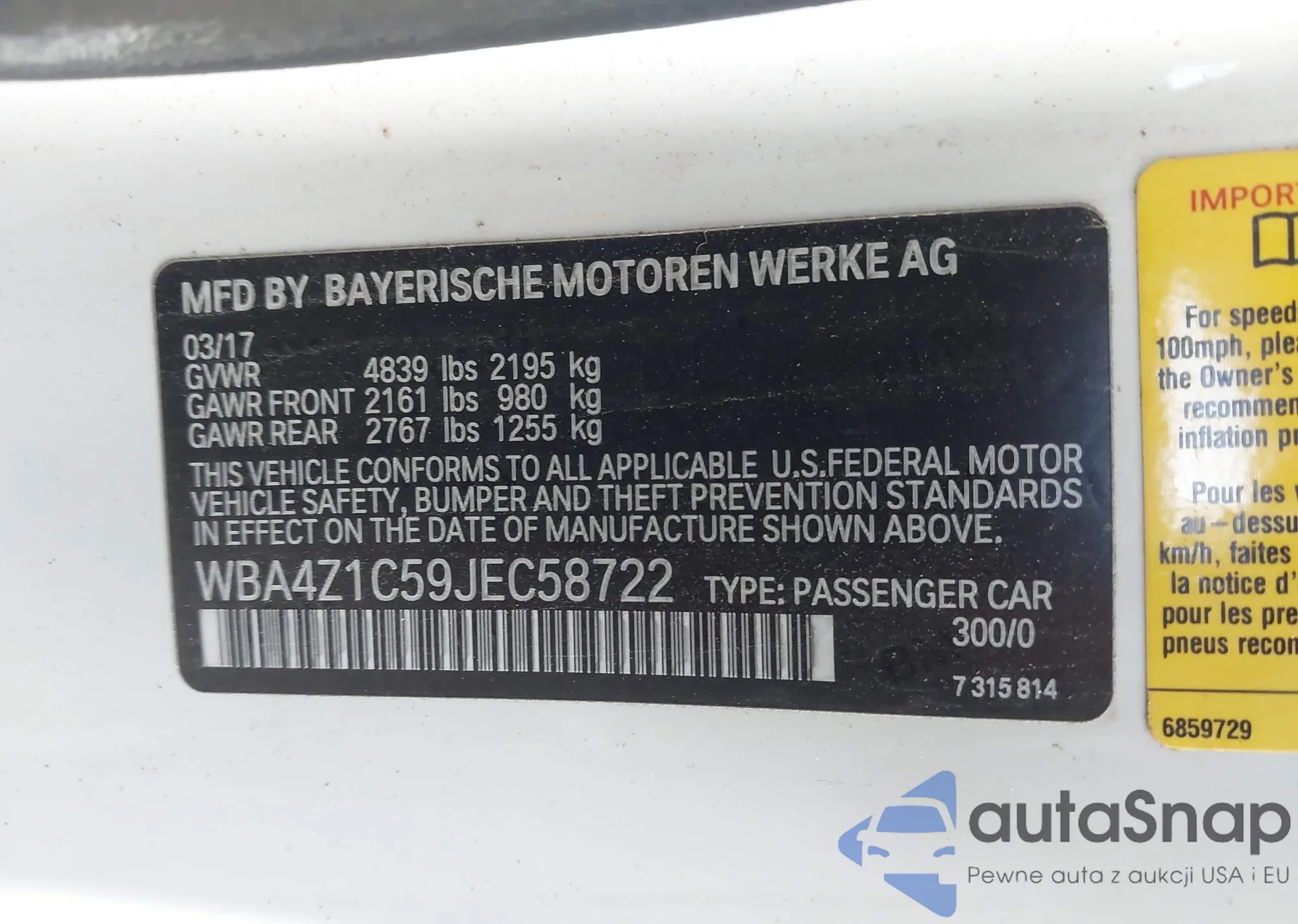 • VIN WBA4Z1C59JEC58722