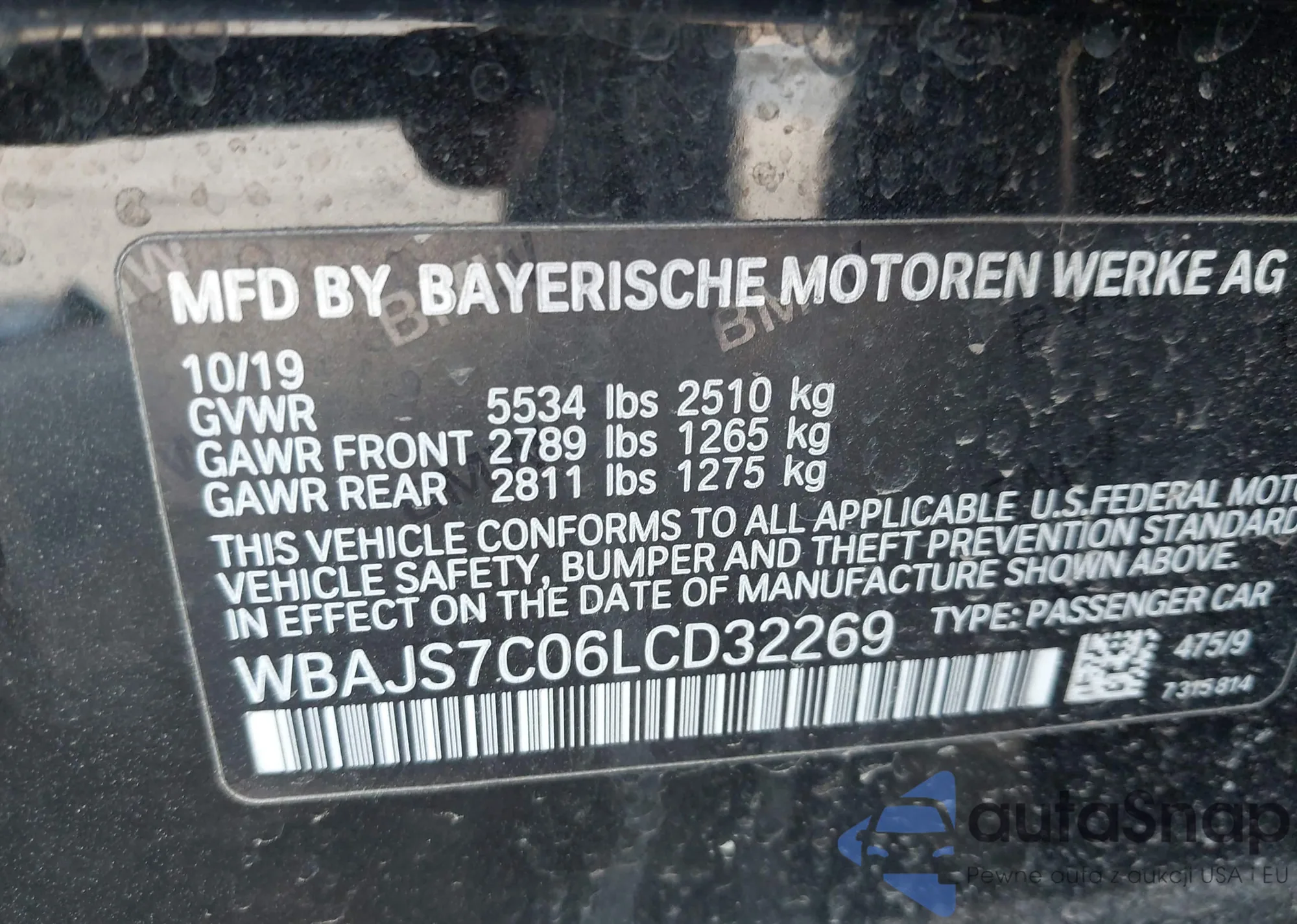 • VIN WBAJS7C06LCD32269