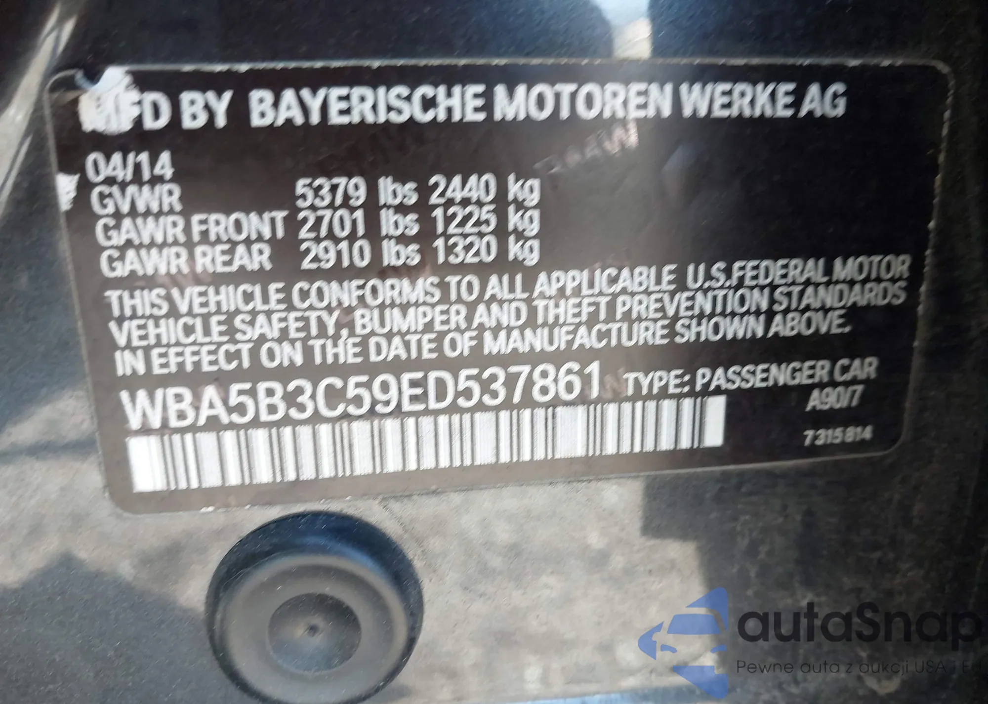 • VIN WBA5B3C59ED537861