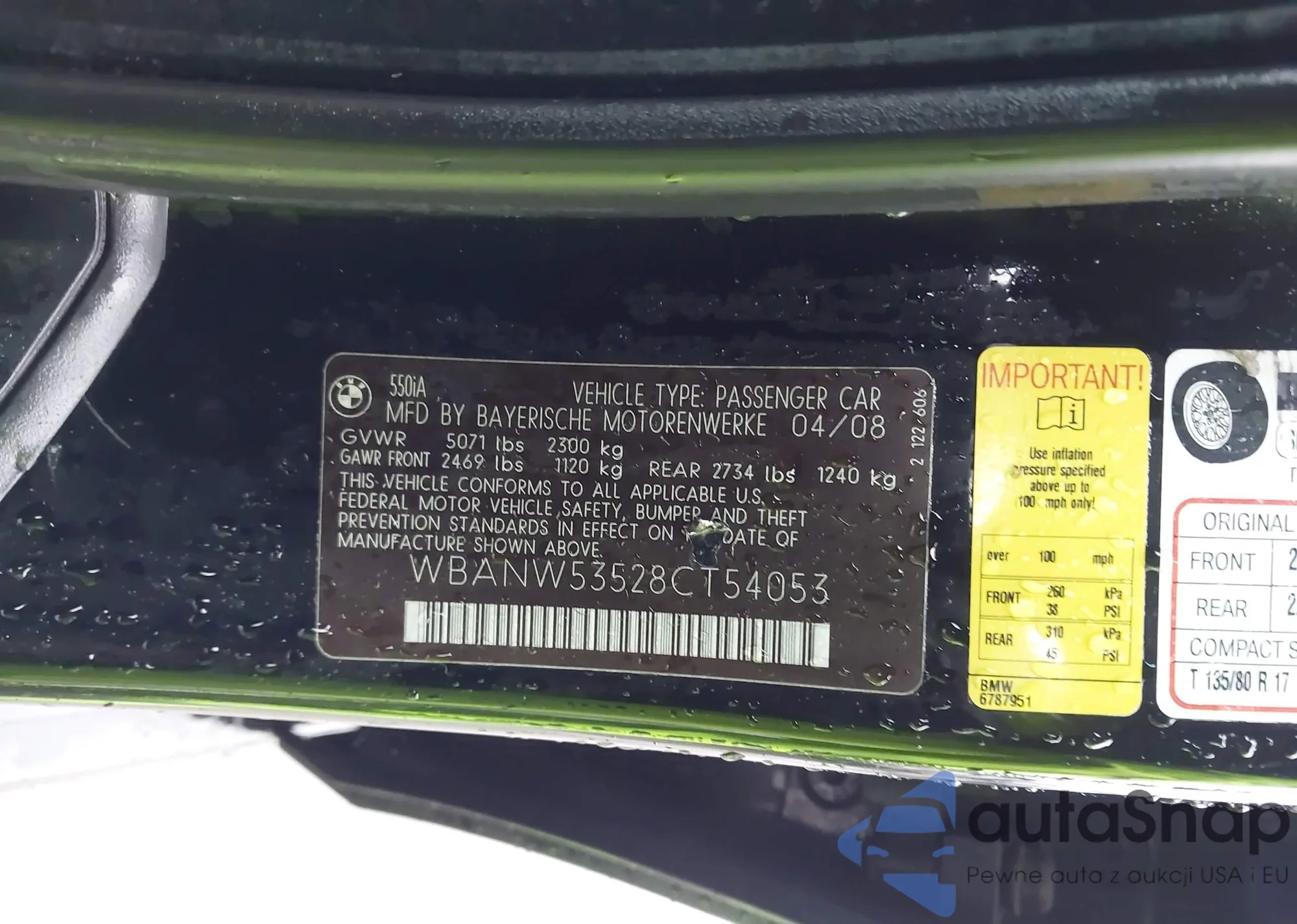 2008 BMW 535I z USA, uszkodzony, nr VIN WBANW13548CZ82057