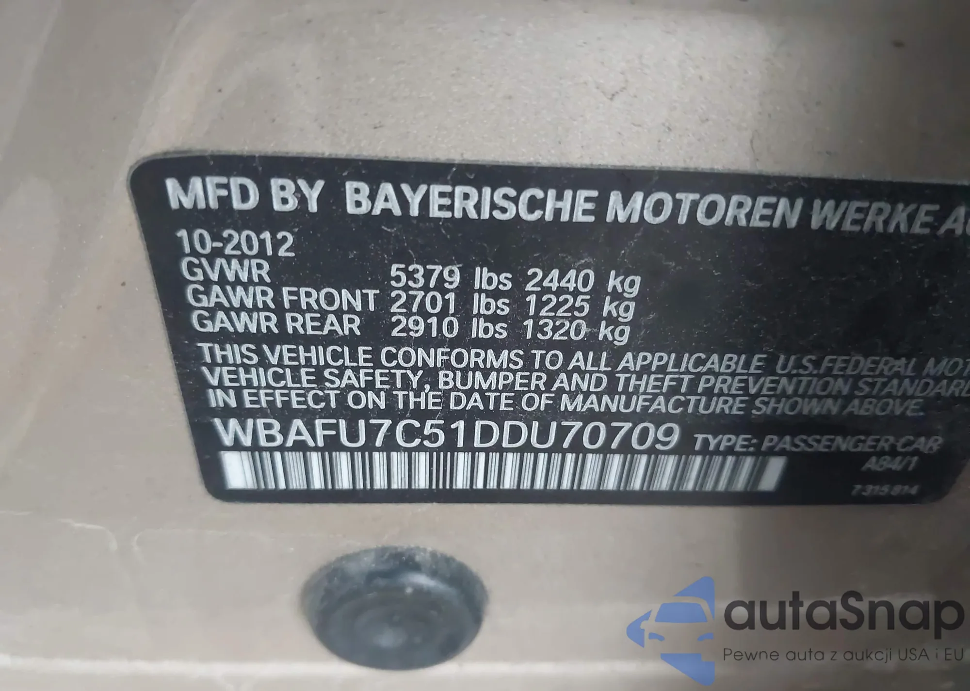 • VIN WBAFU7C53CDU60875