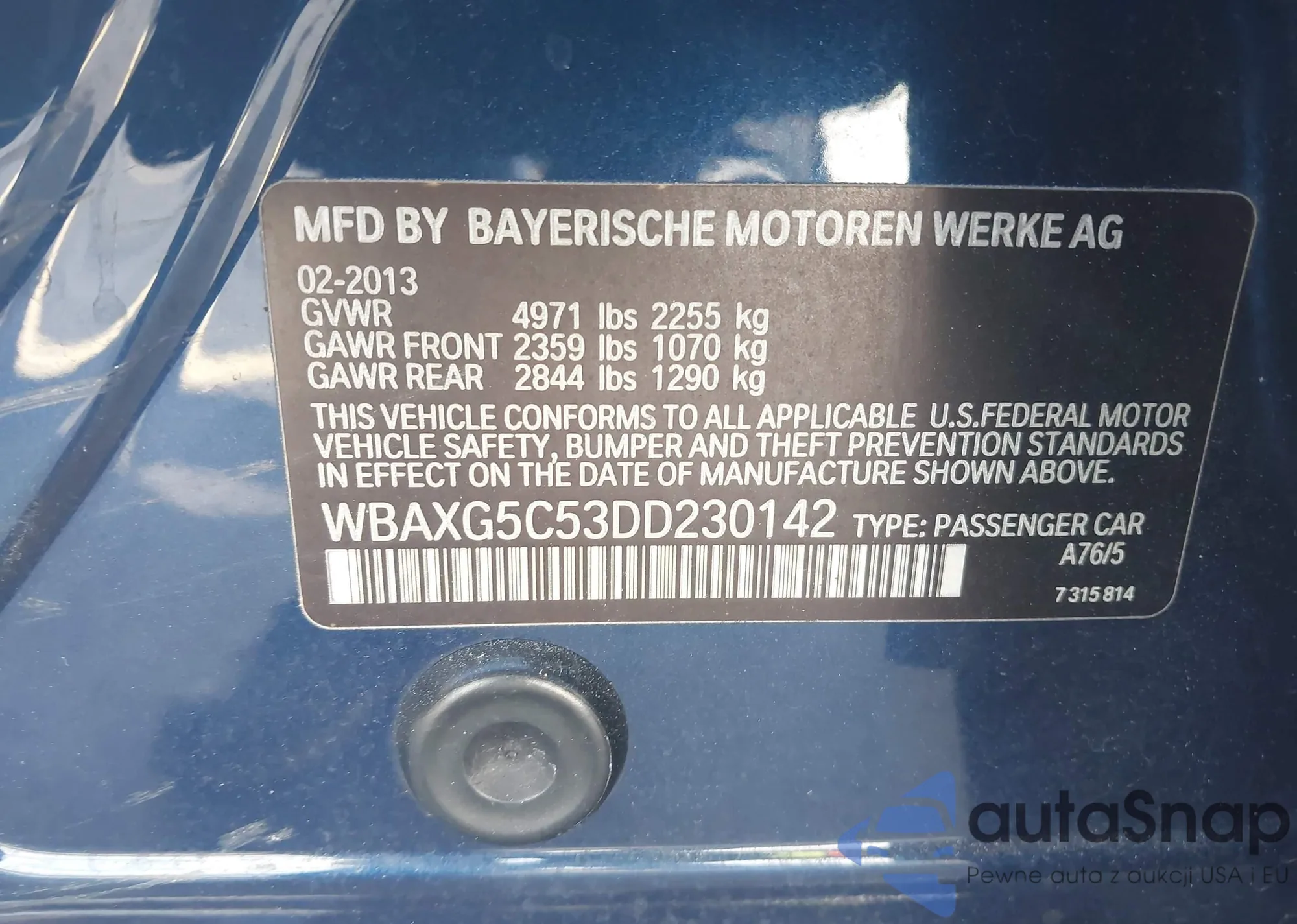 LOT: 43556915 VIN: WBAXG5C53DD230142