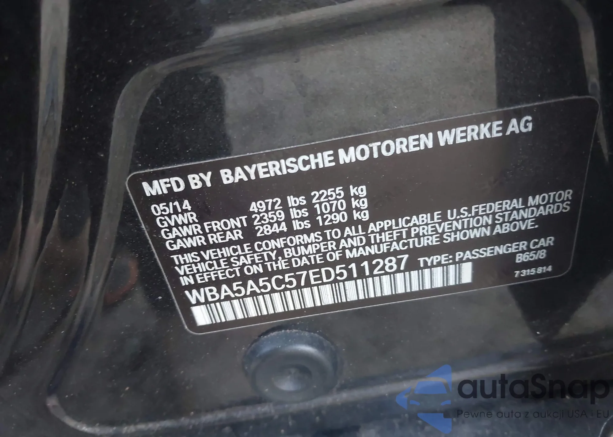 LOT: 44387080 VIN: WBA5A5C57ED511287