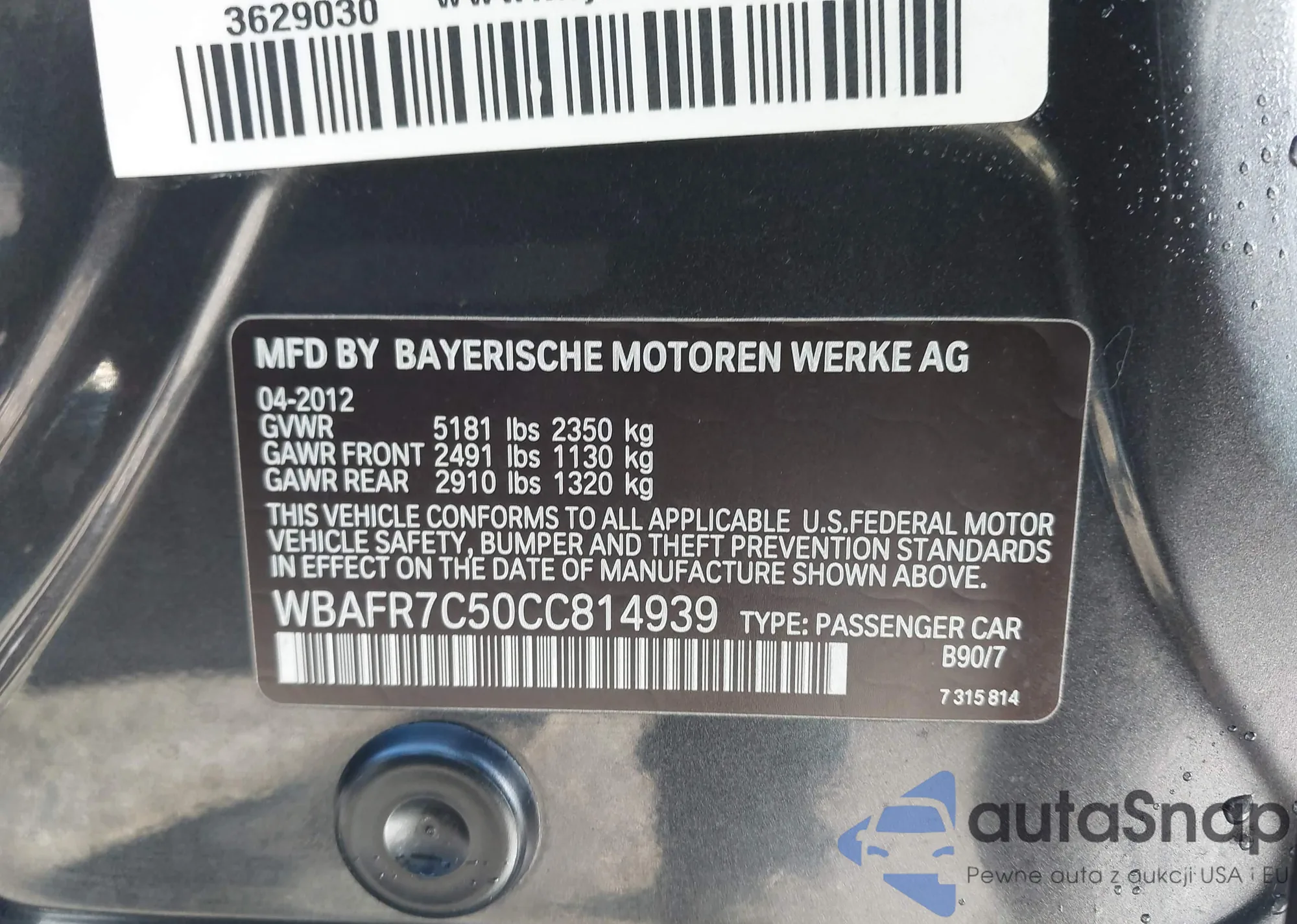 • VIN WBAFR7C50CC814939