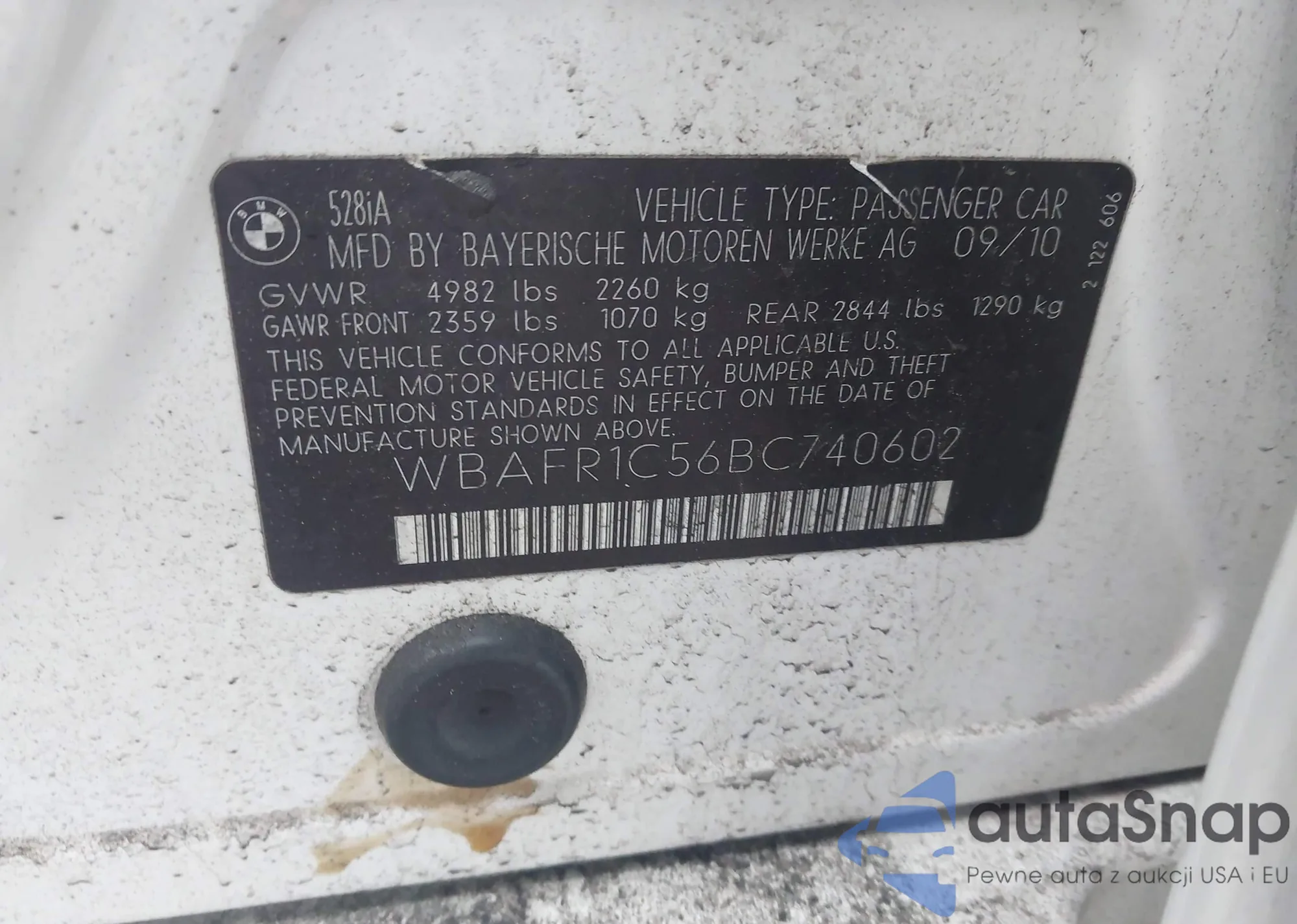 • VIN WBAFR1C56BC740602
