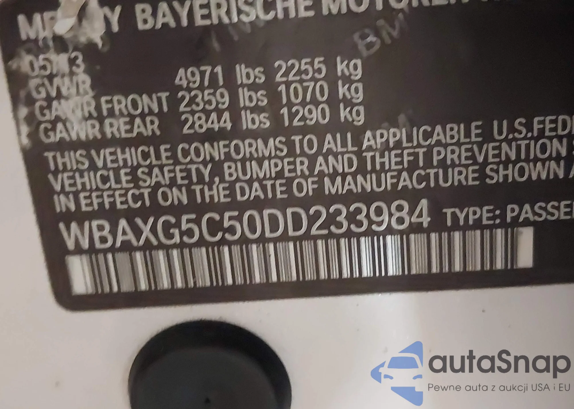 • VIN WBAXG5C50DD233984