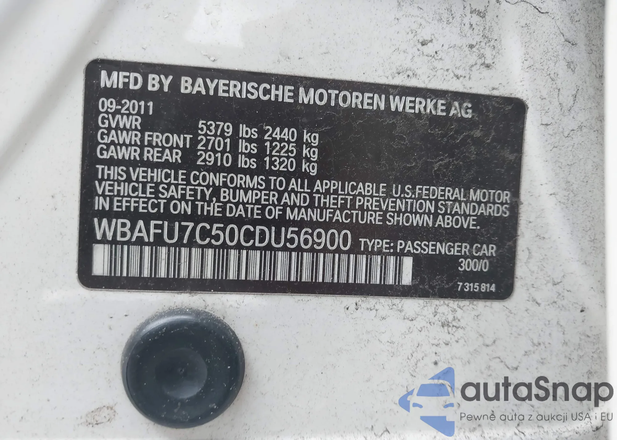 • VIN WBAFU7C50CDU56900