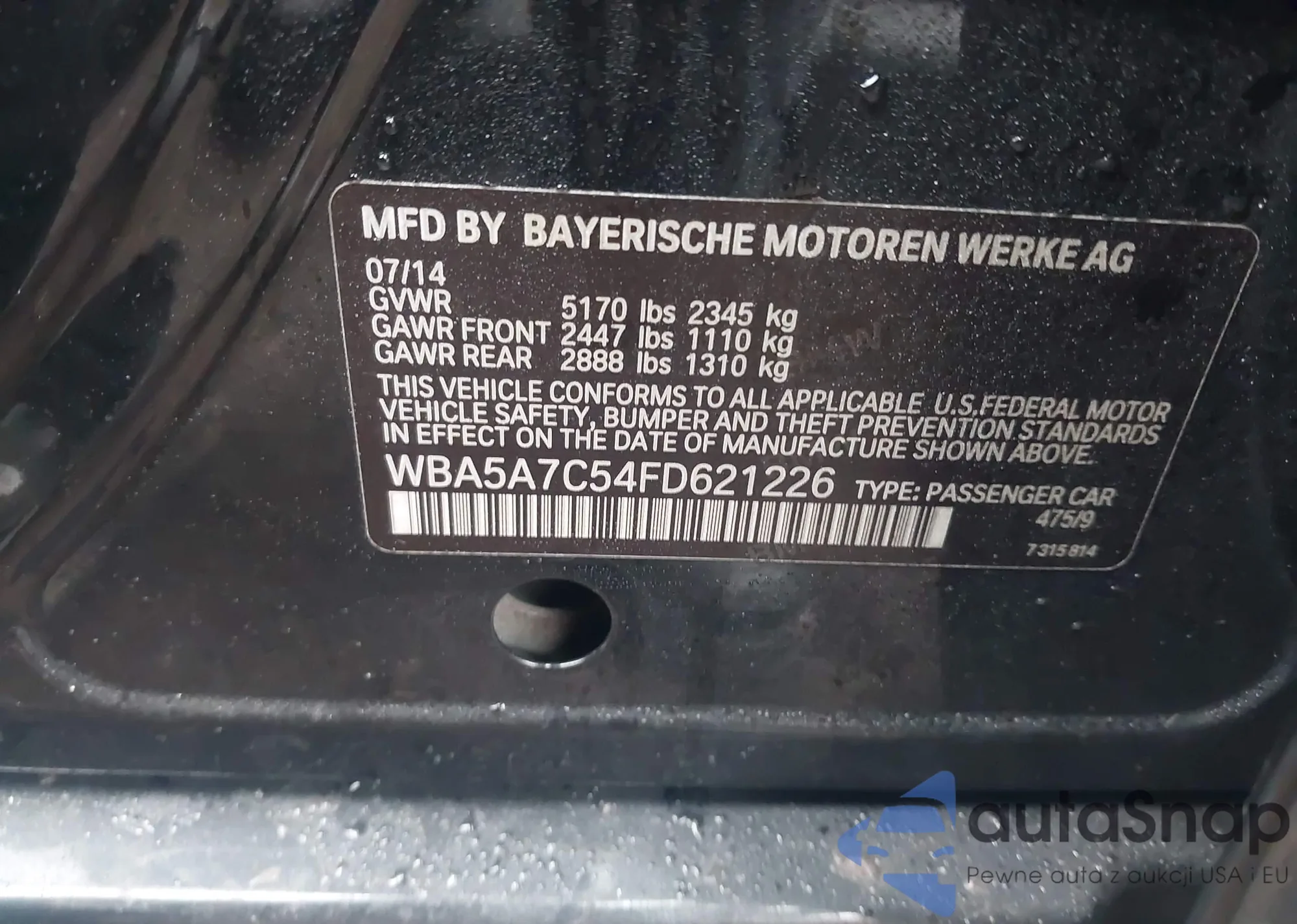 • VIN WBA5A7C54FD621226