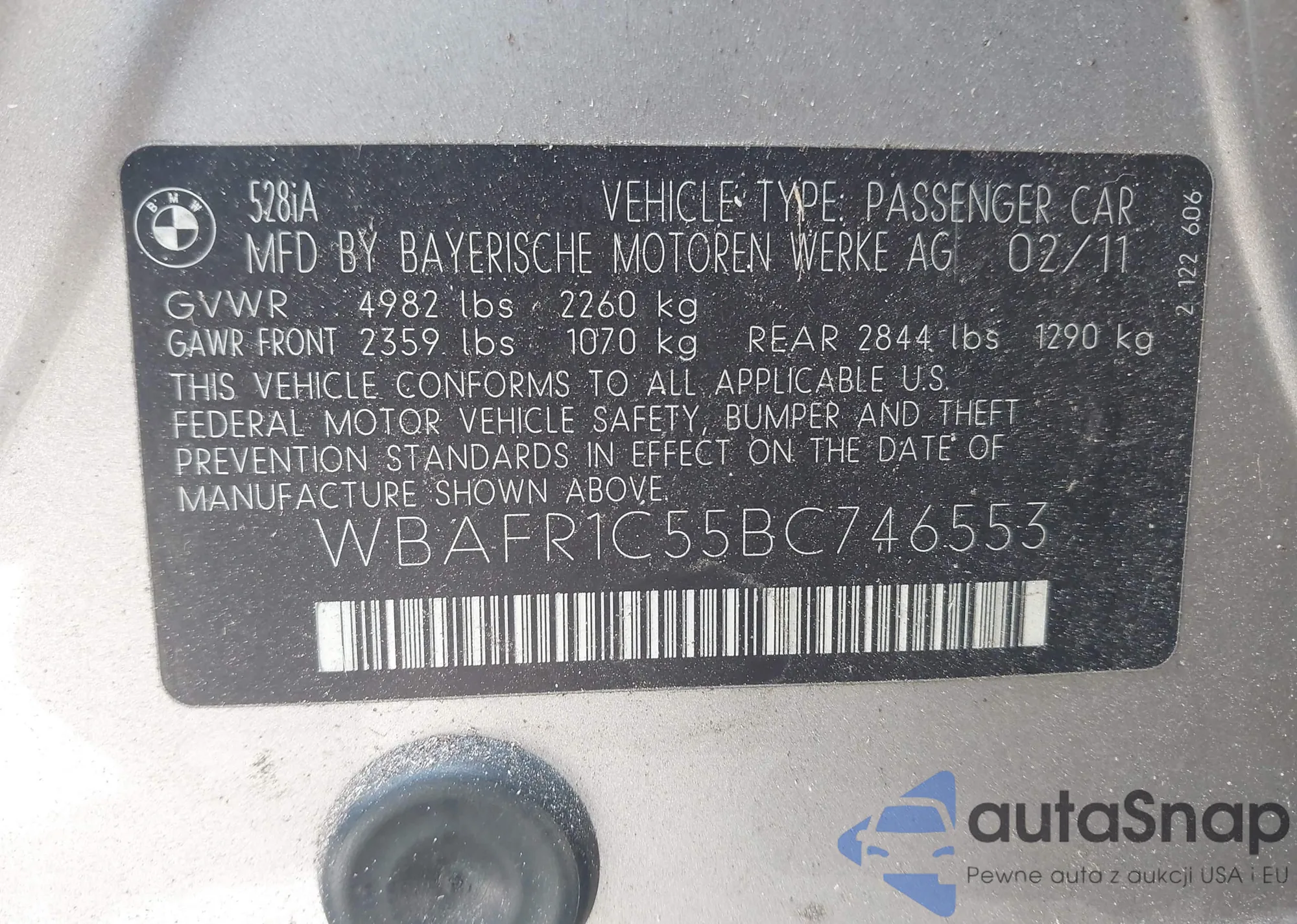 • VIN WBAFR1C55BC746553