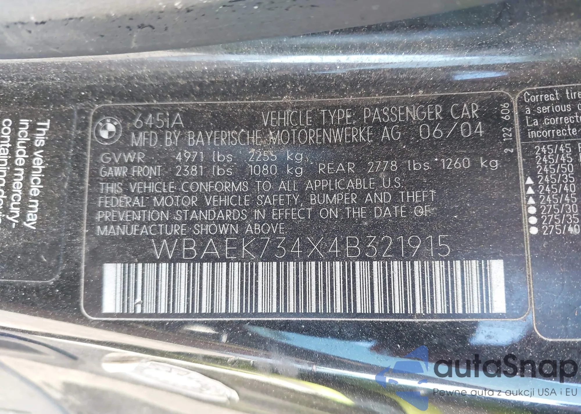 Kup BMW 6er II (E63/E64) z USA