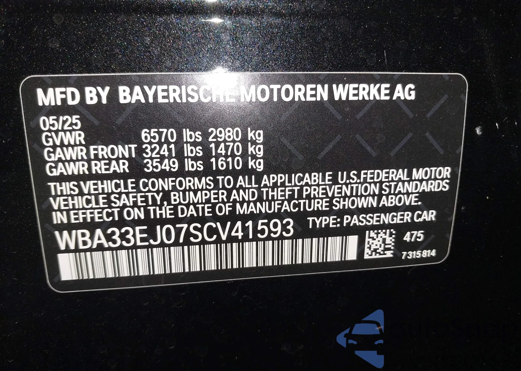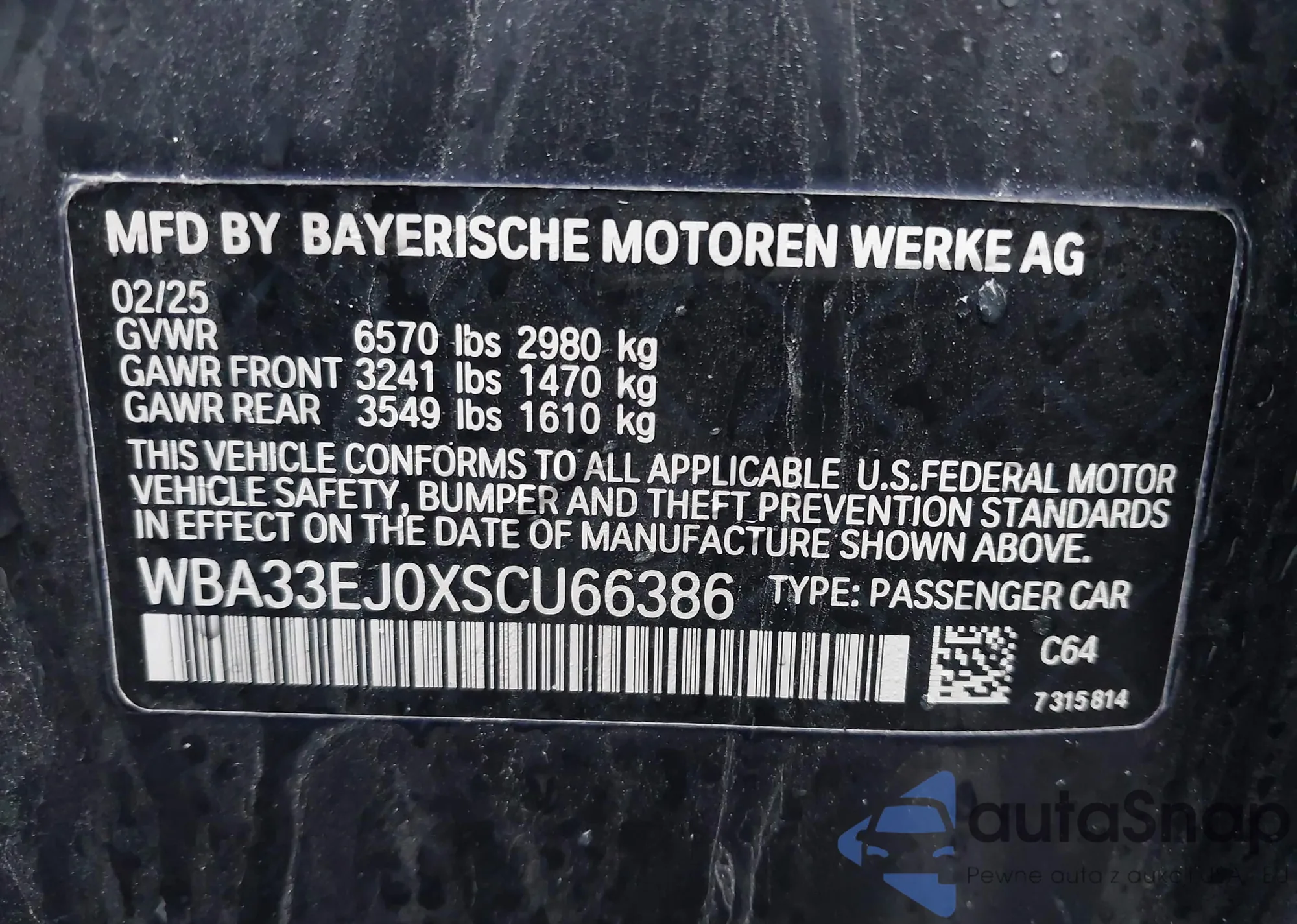 LOT: 43593408 VIN: WBA33EJ07SCV41593