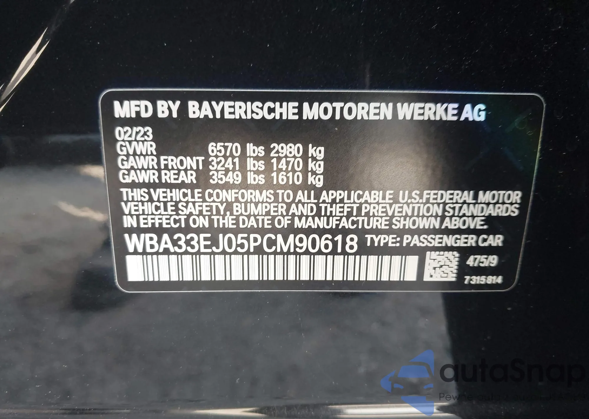 LOT: 44331438 VIN: WBA33EJ05PCM90618