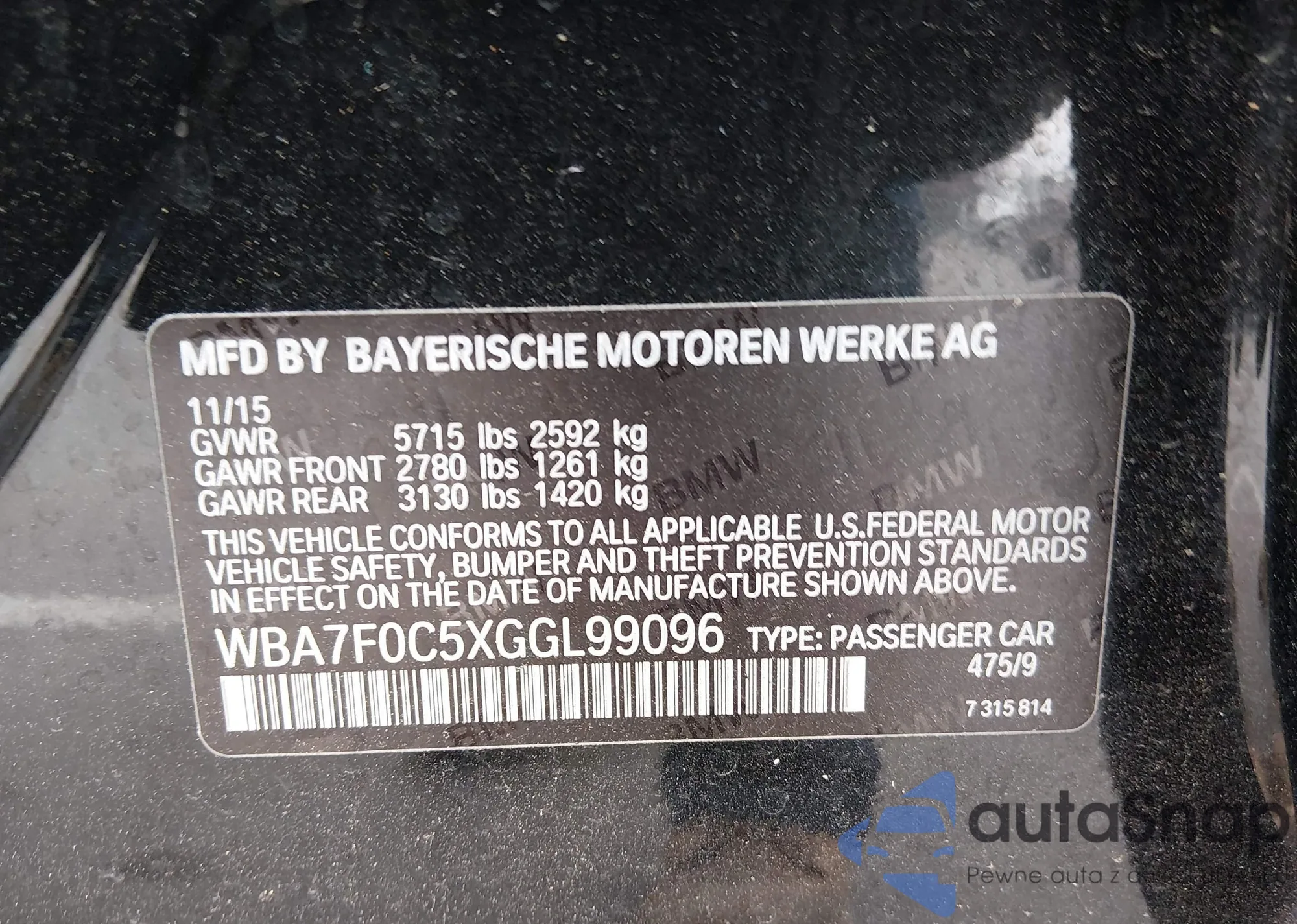 • VIN WBA7F0C5XGGL99096
