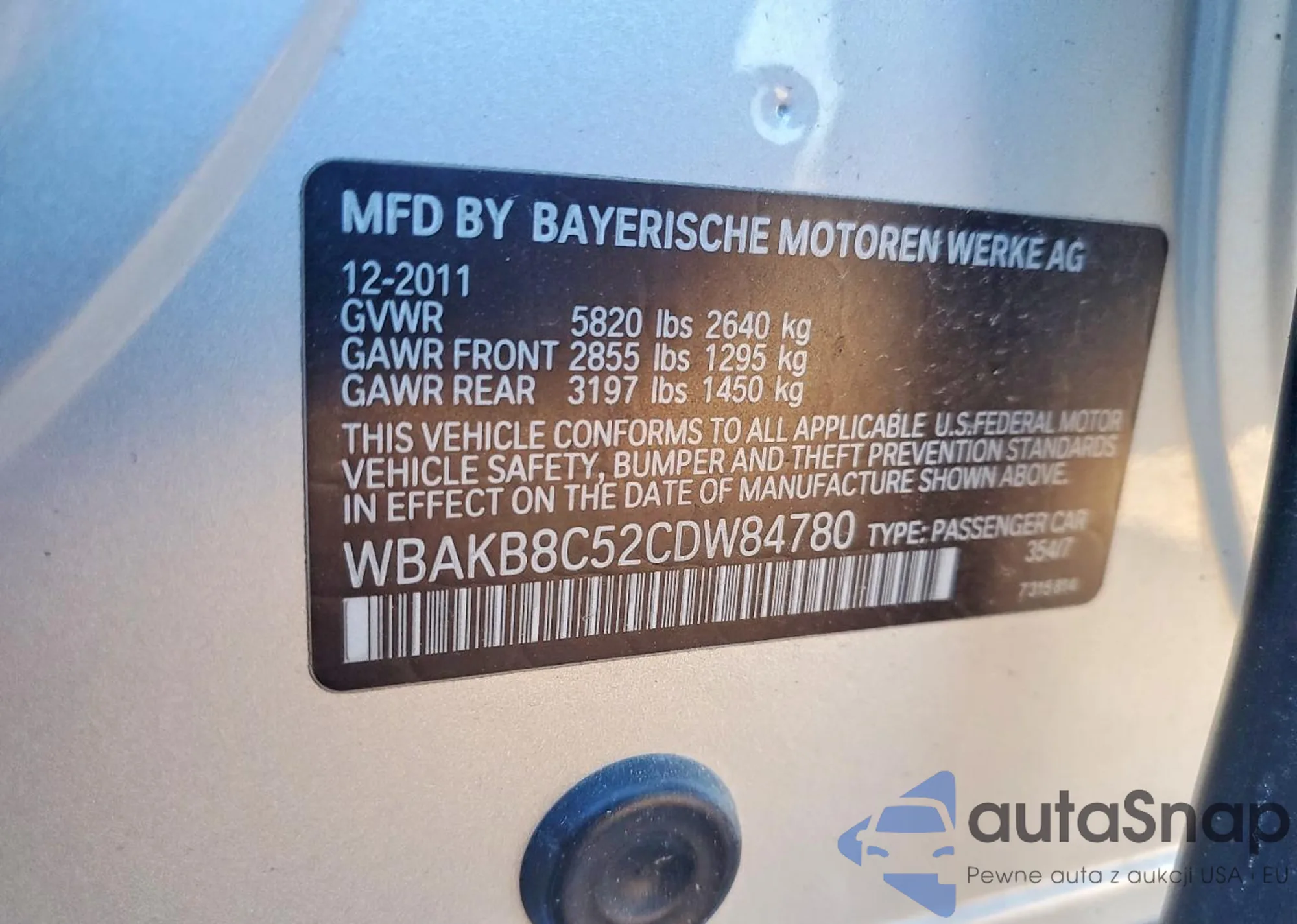 LOT: 76315795 VIN: WBAKB8C52CDW84780