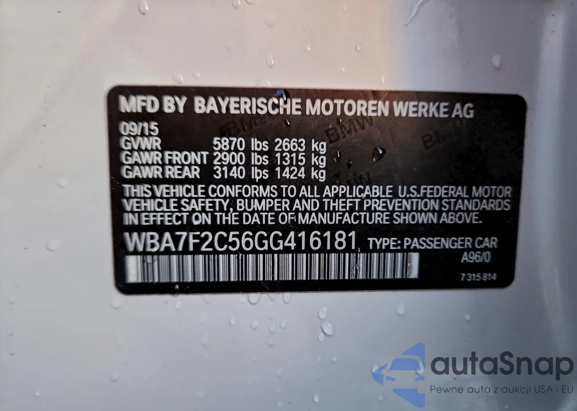 • VIN WBA7F2C56GG416181