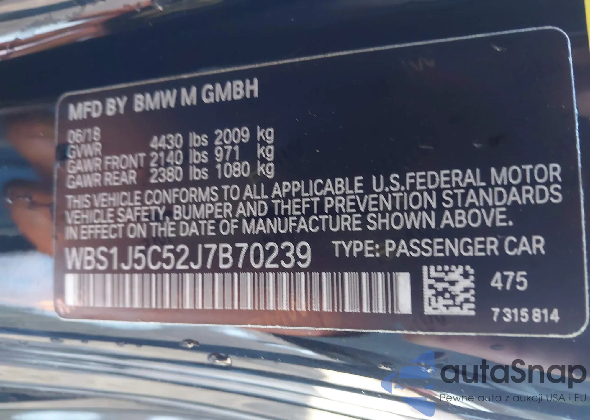 • VIN WBS1J5C52J7B70239
