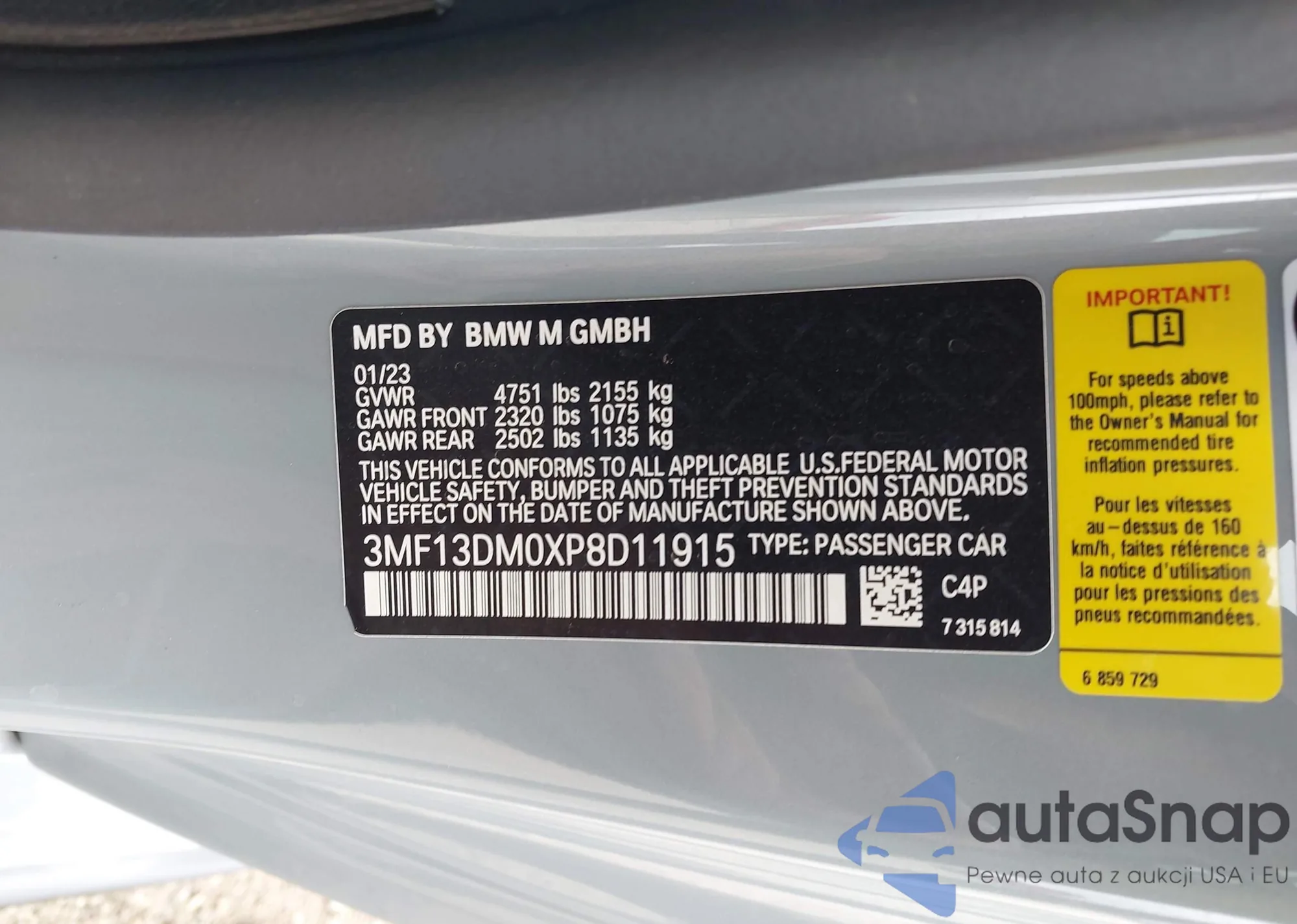 2023 BMW M2 z USA, uszkodzony, nr VIN 3MF13DM0XP8D11915