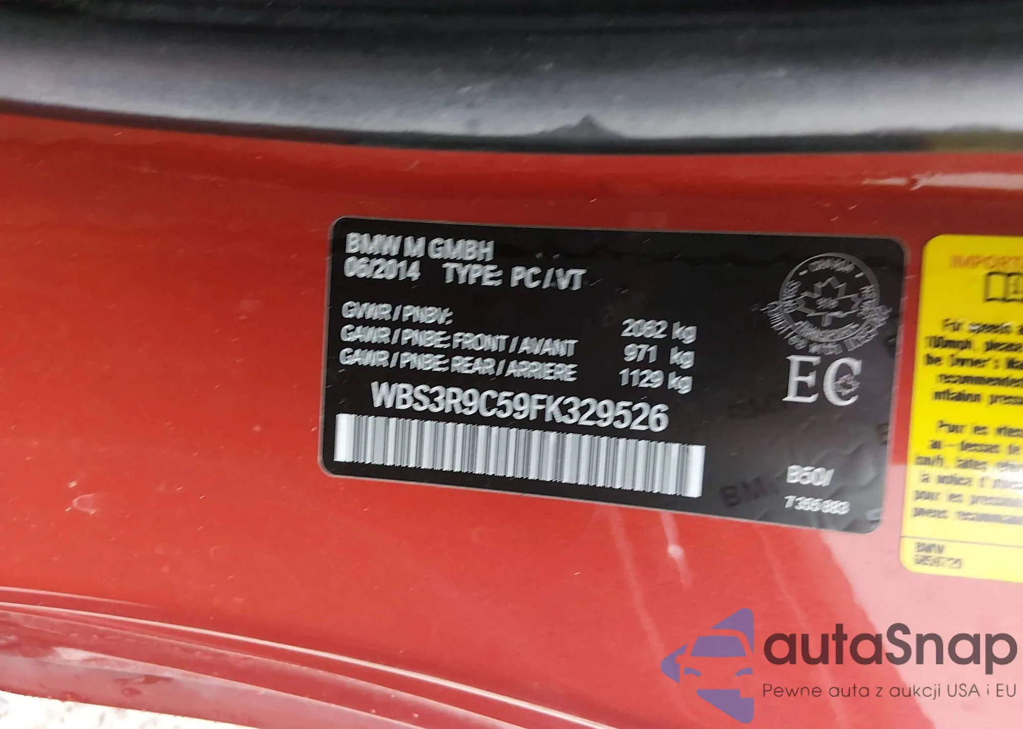 LOT: 62190473 VIN: WBS3R9C59FK329736