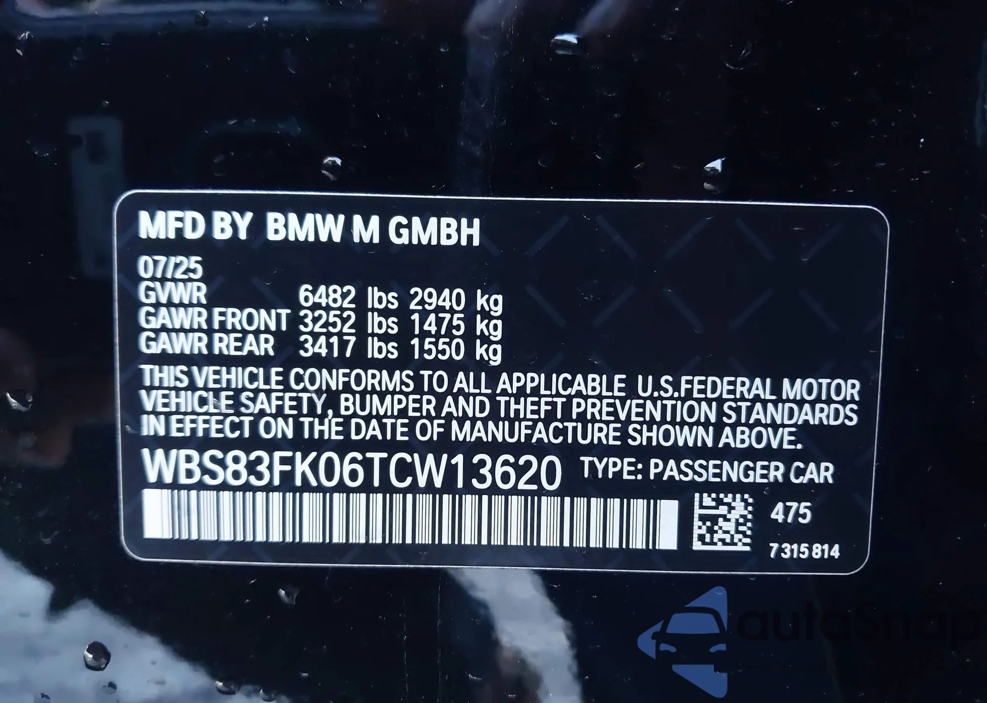 • VIN WBS83GV07TCW00246