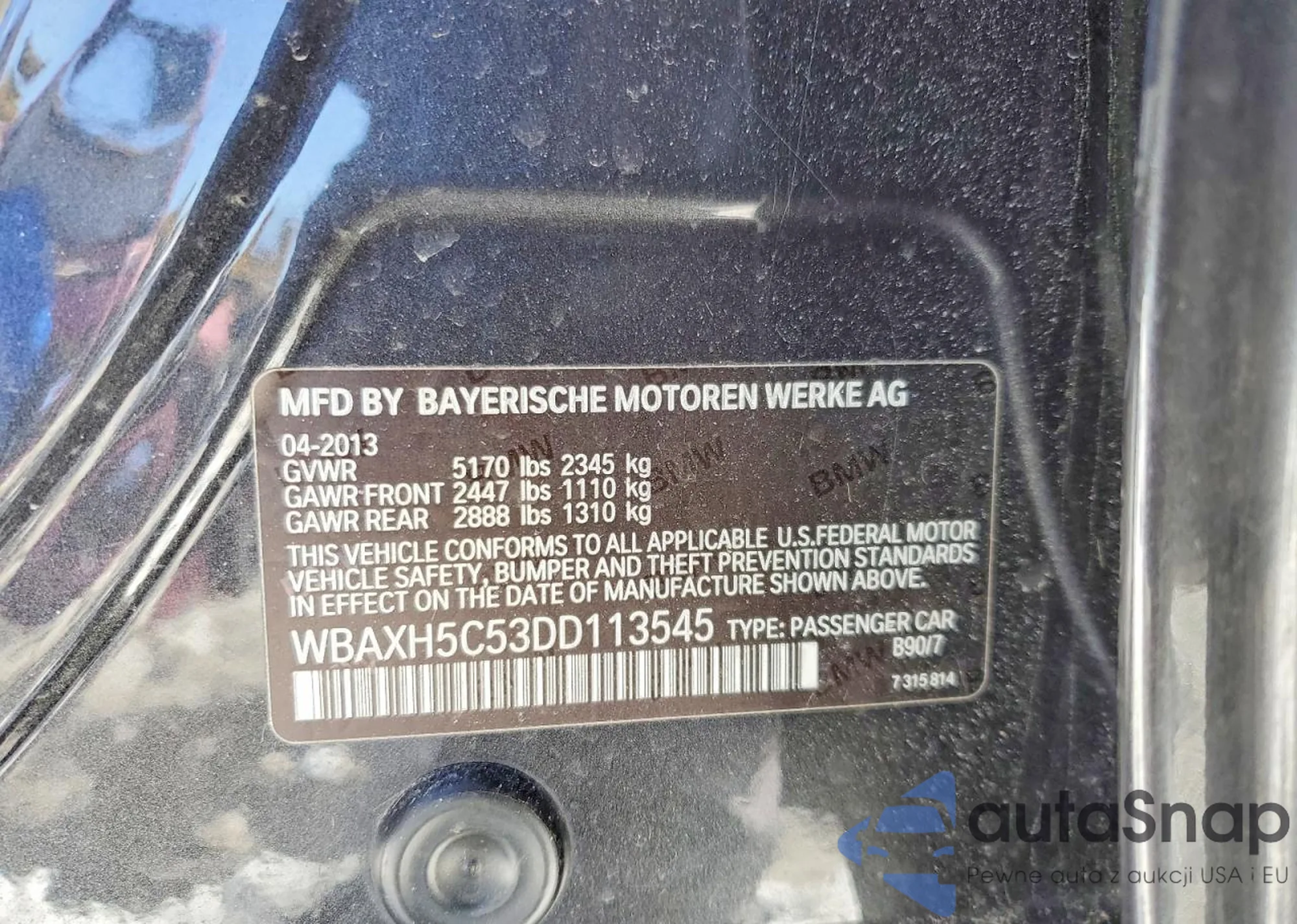 LOT: 78454925 VIN: WBAXH5C53DD113545