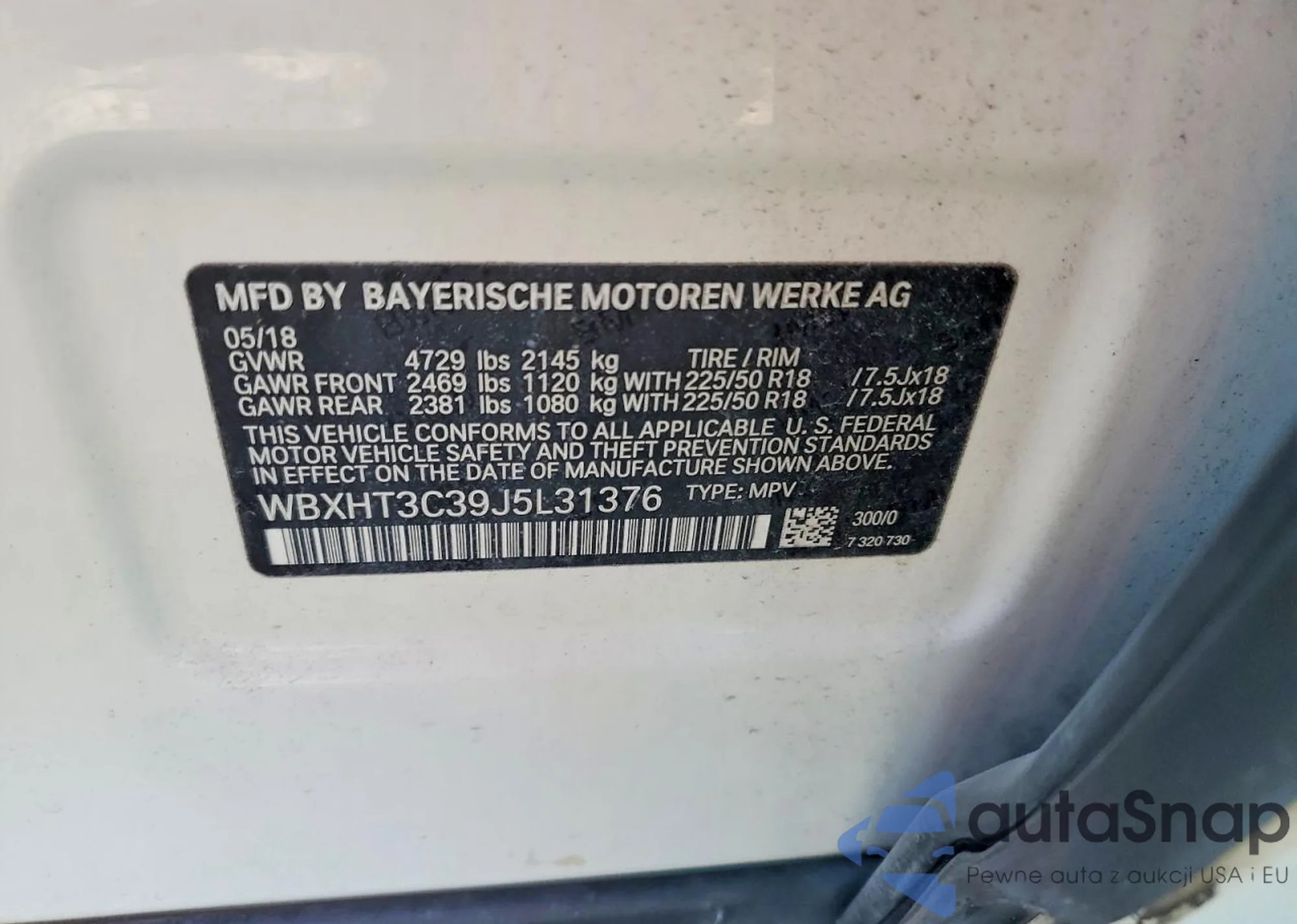 LOT: 74861455 VIN: WBXHT3C39J5L31376