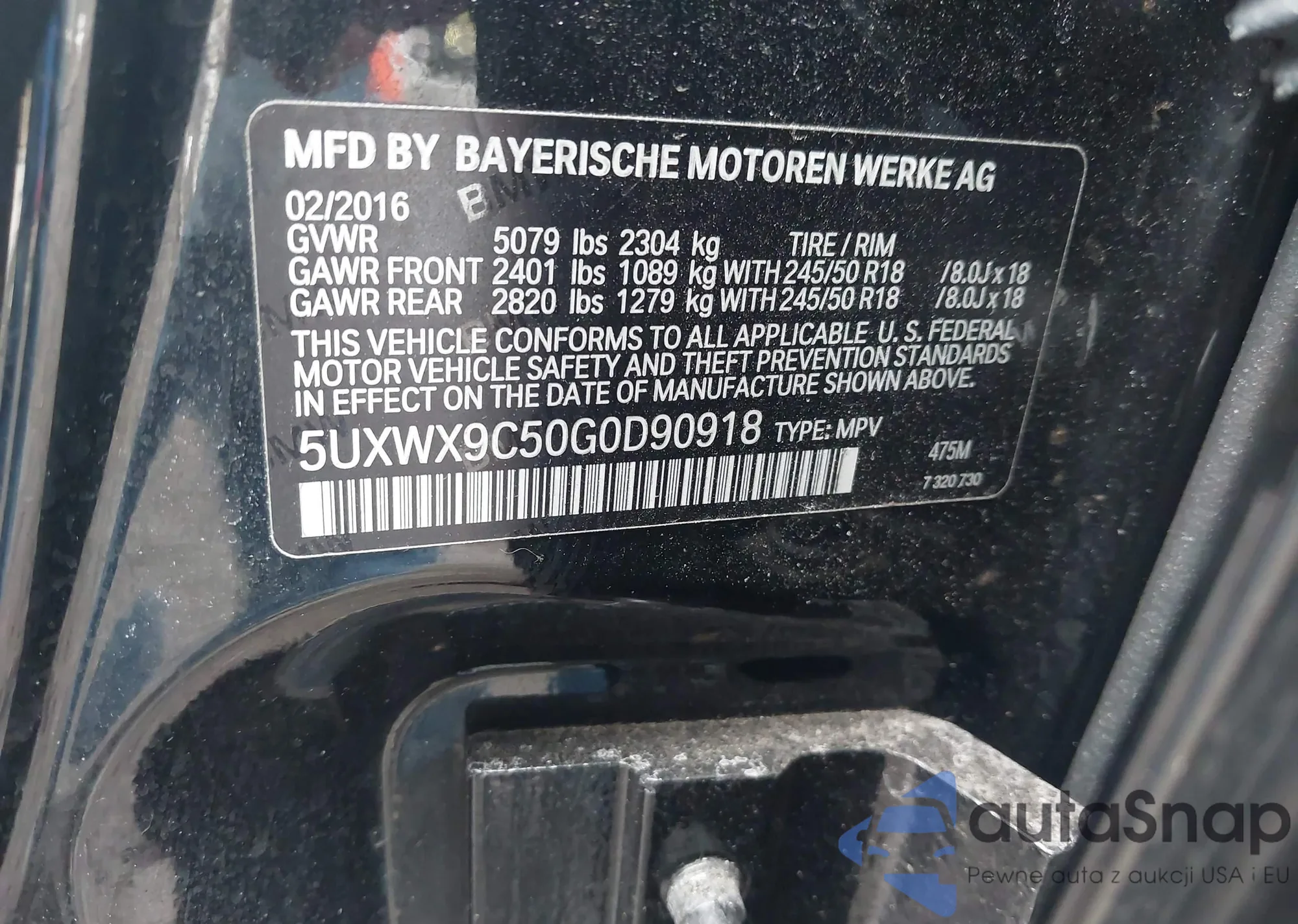 • VIN 5UXWX9C50G0D90918