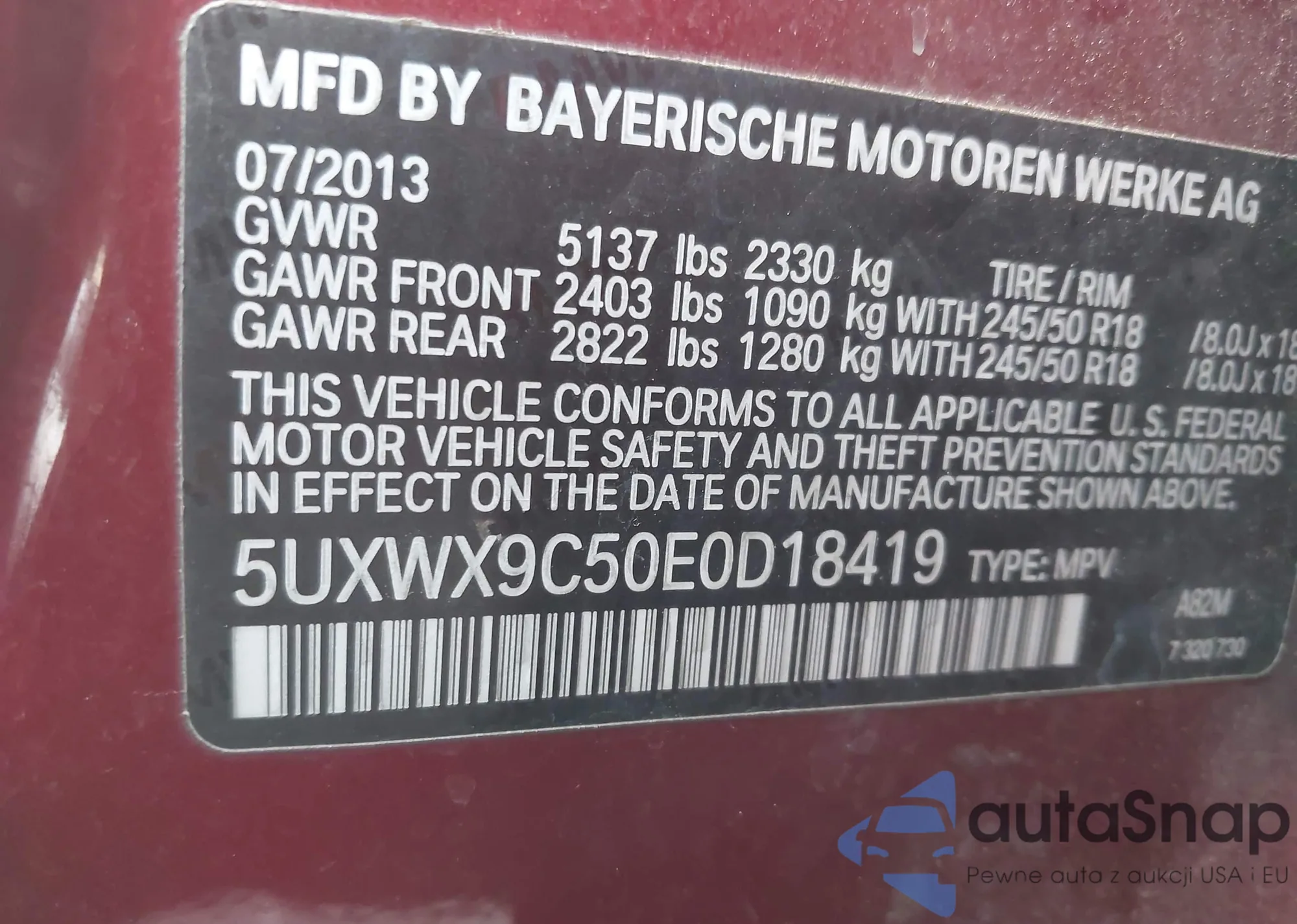 • VIN 5UXWX7C52DL982428