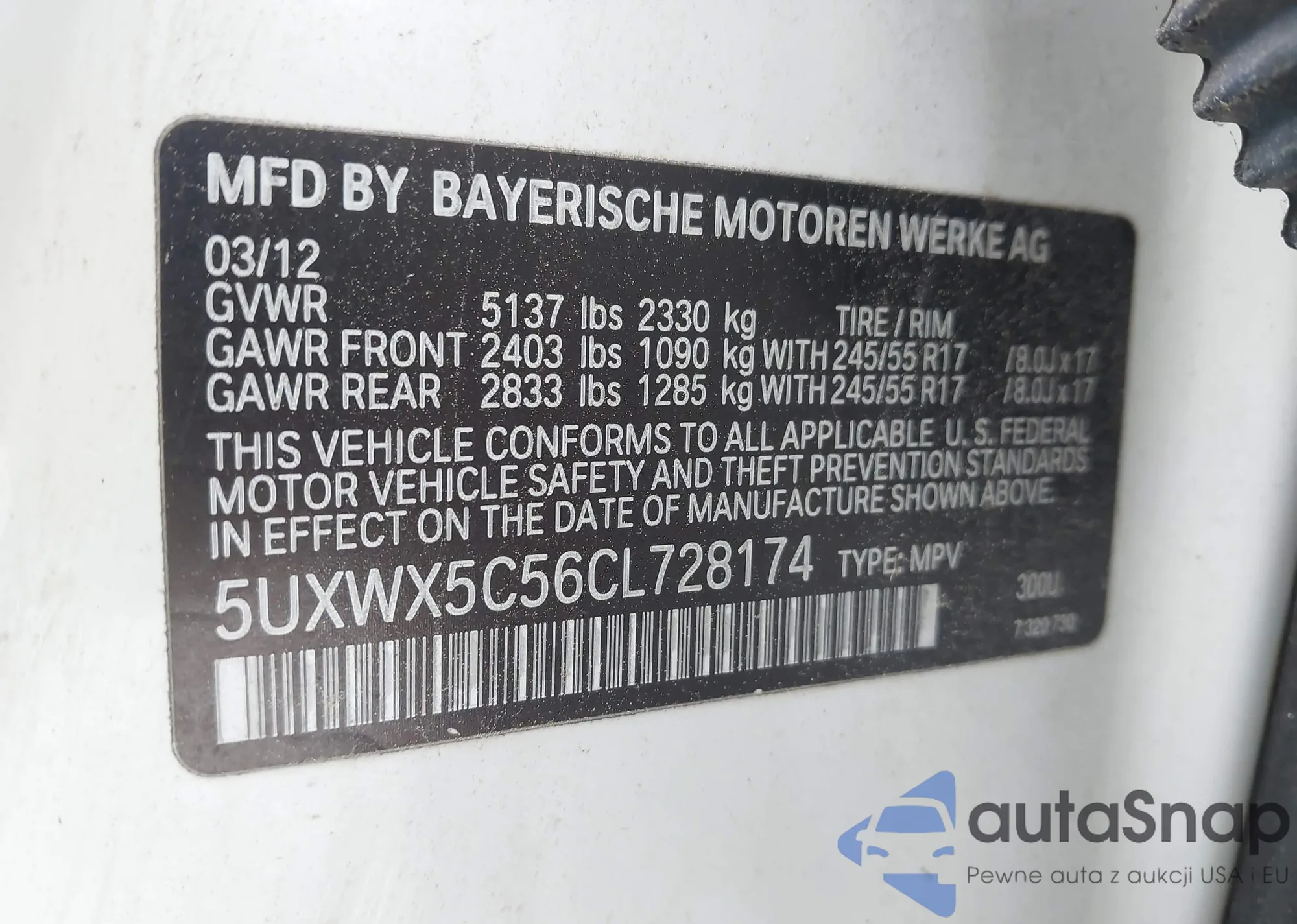 • VIN 5UXWX5C56CL728174