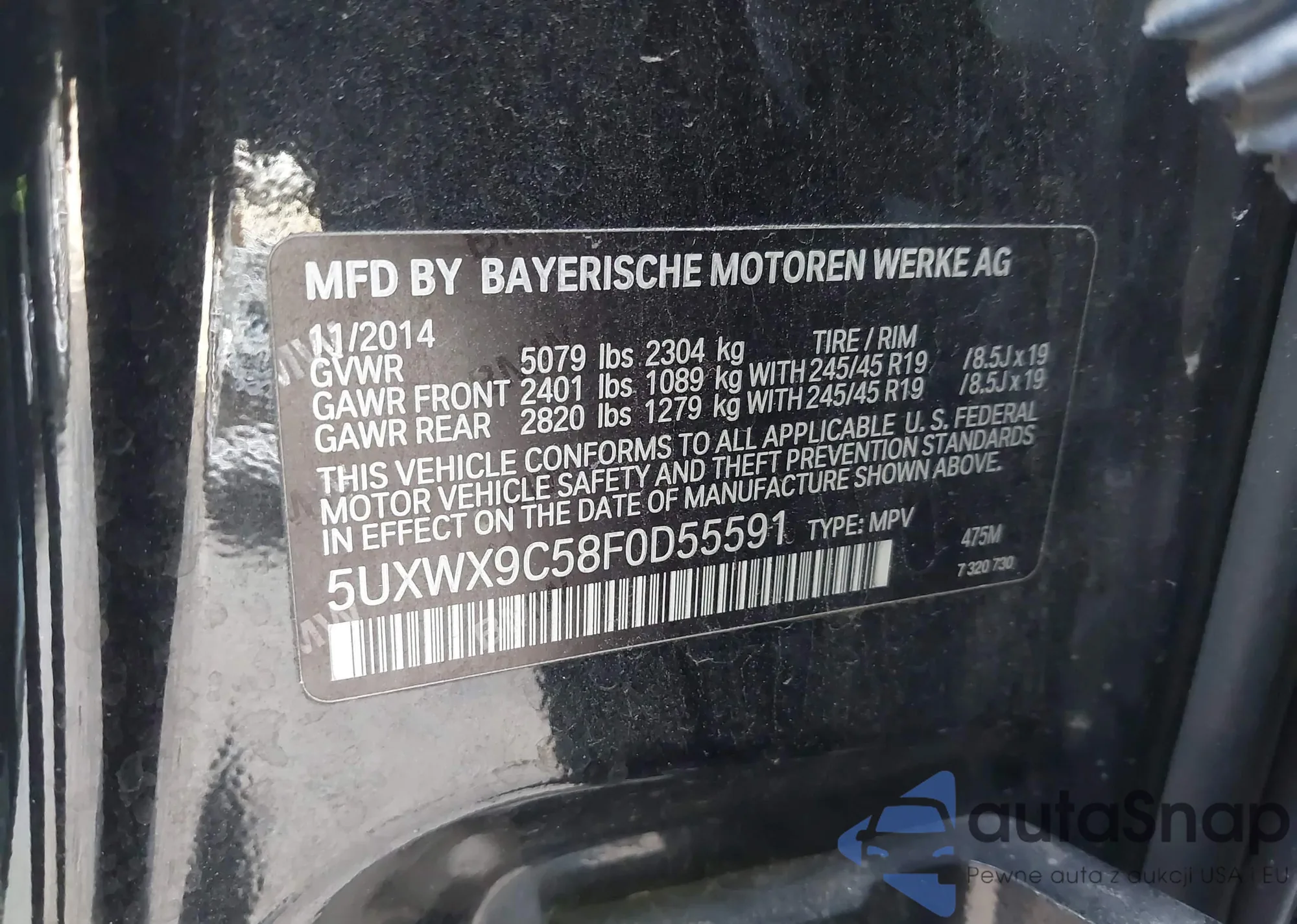 • VIN 5UXWX9C58F0D55591