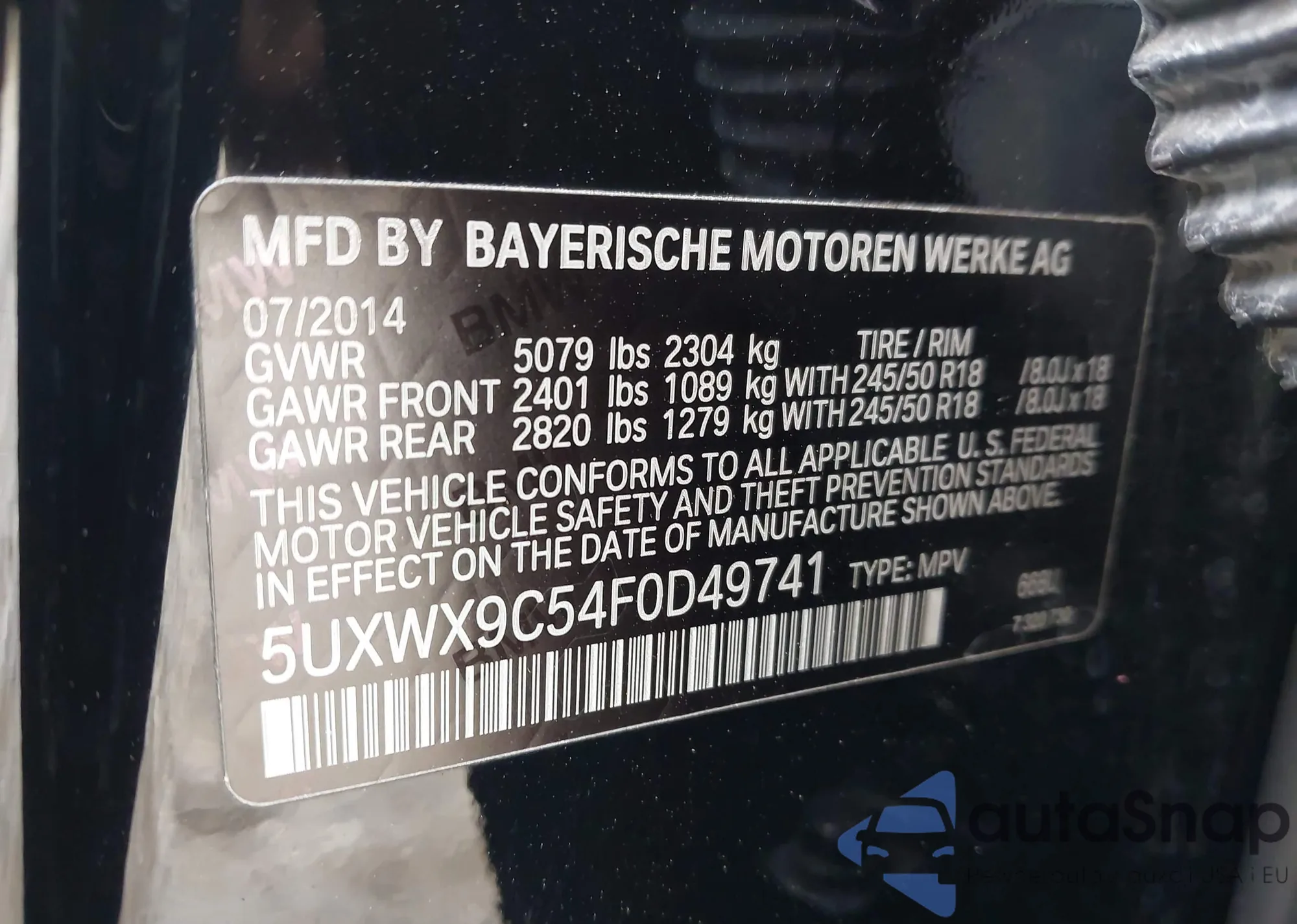 • VIN 5UXWX9C54F0D49741
