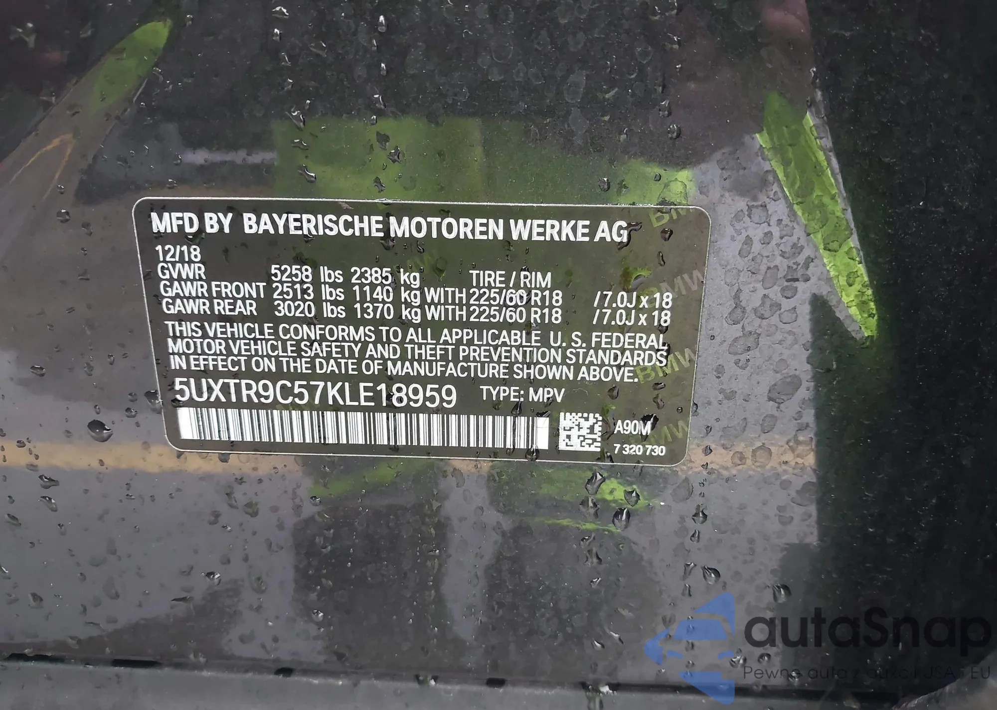 • VIN 5UXTR9C57KLE18959
