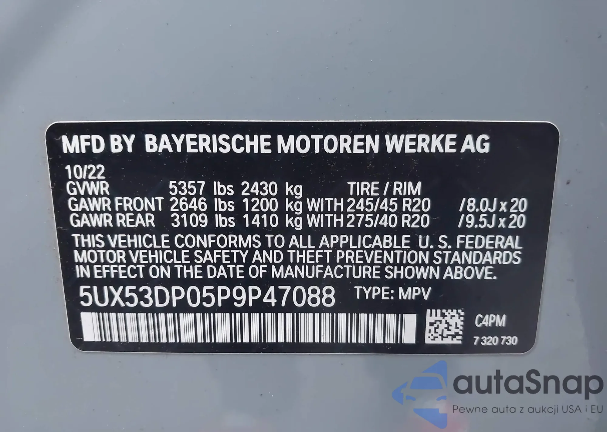 • VIN 5UX53DP05P9P47088