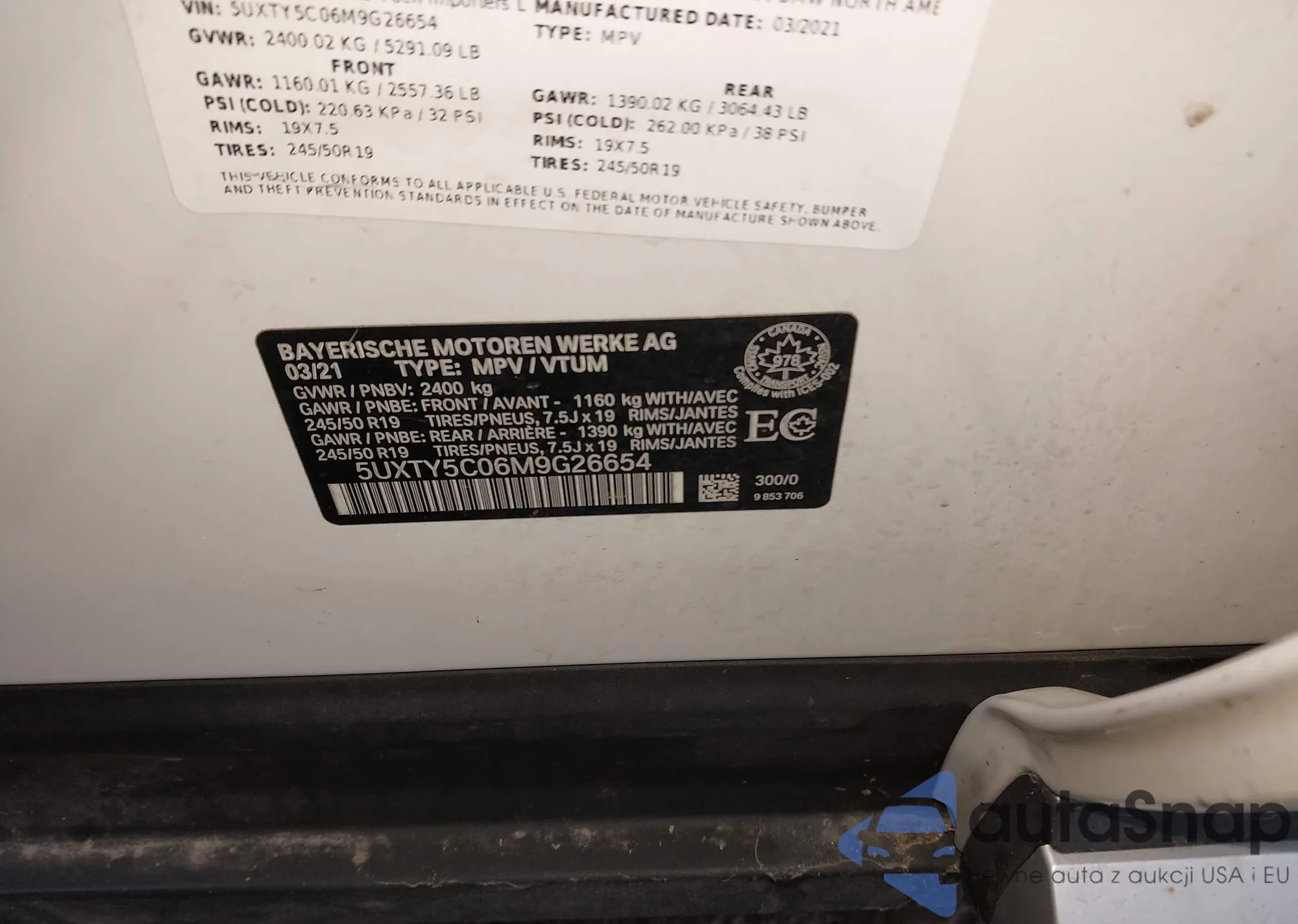 • VIN 5UXTY5C06M9G26654