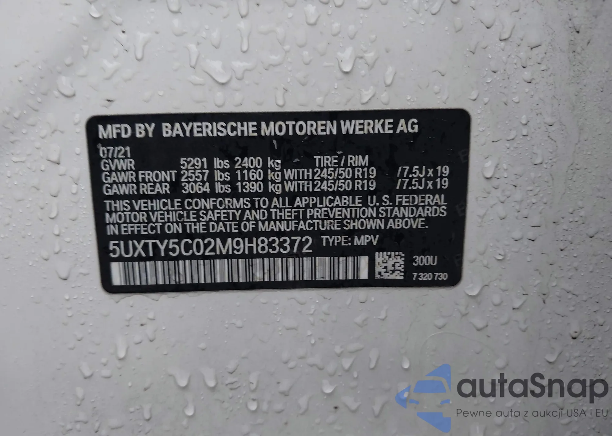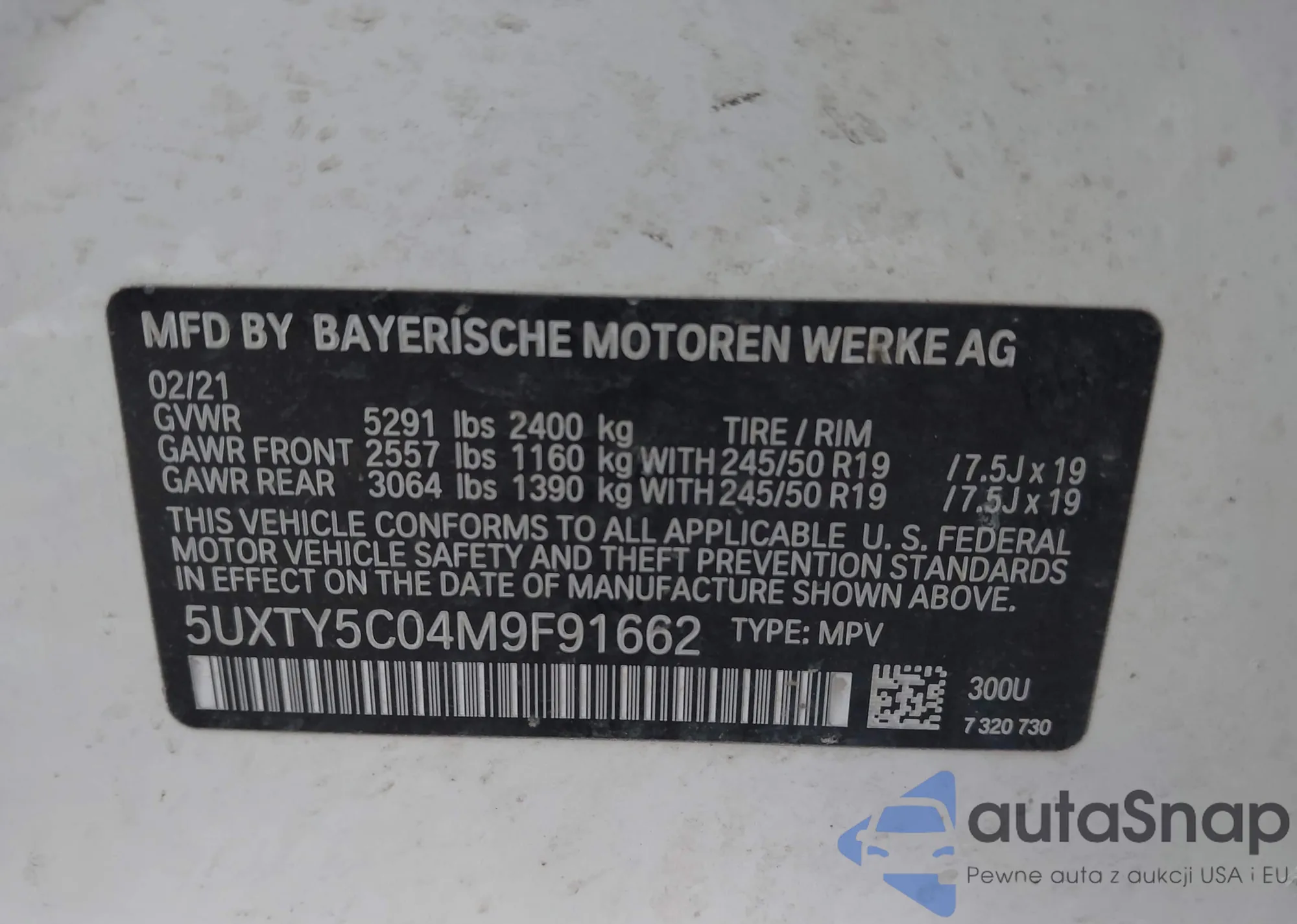 • VIN 5UXTY5C04M9F91662