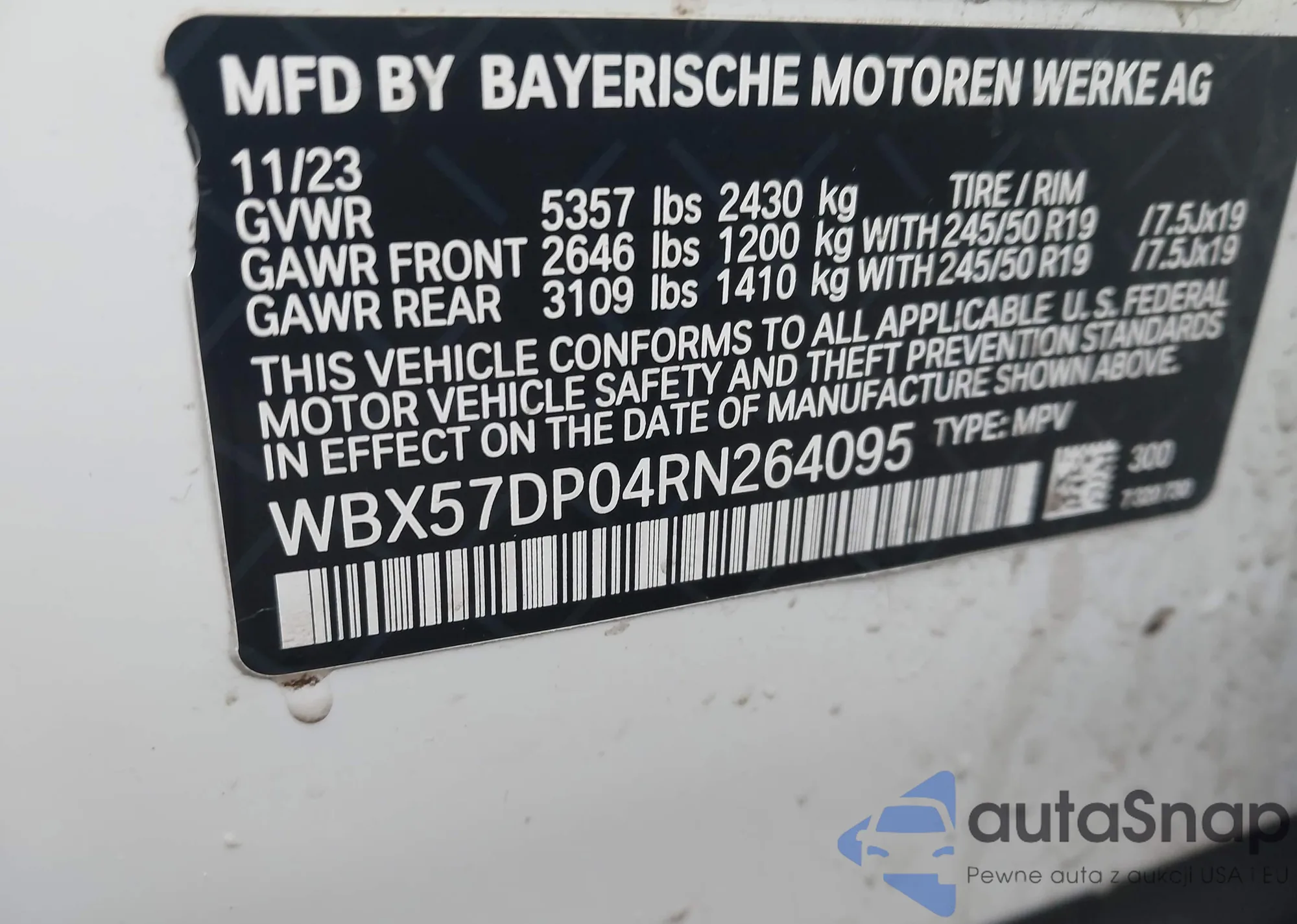 LOT: 44429949 VIN: WBX57DP04RN264095