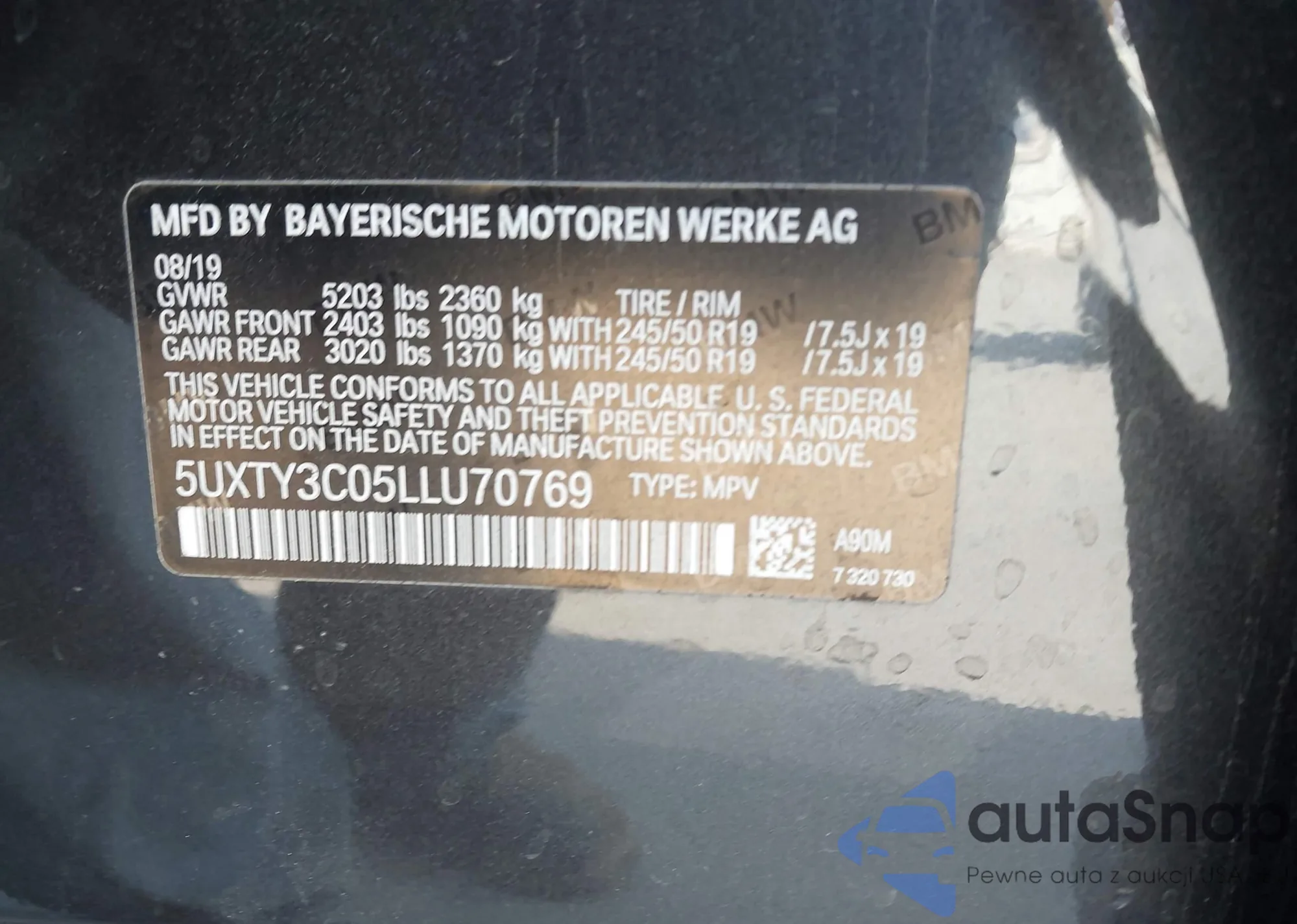 • VIN 5UXTY3C05LLU70769