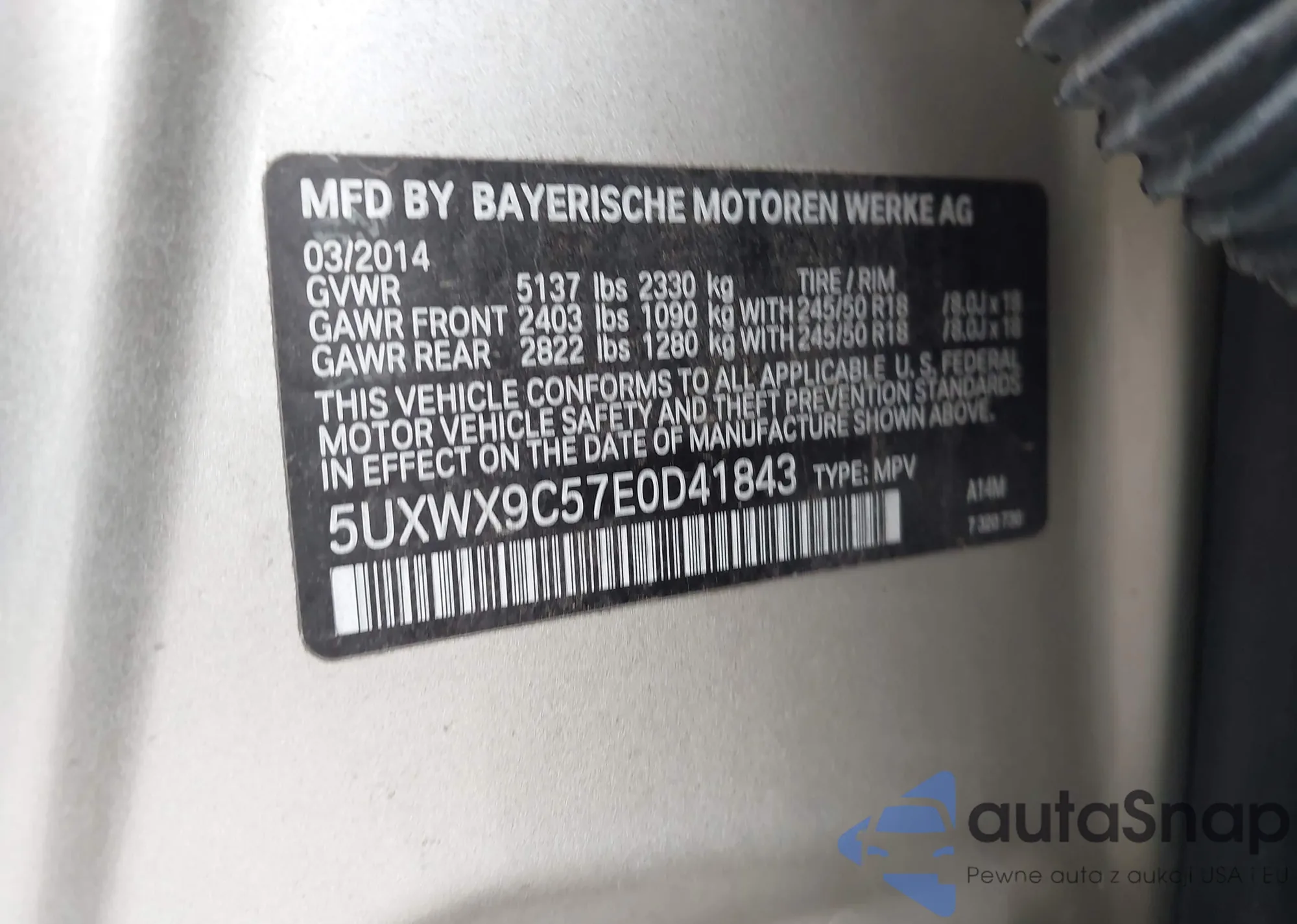 • VIN 5UXWX9C57E0D41843