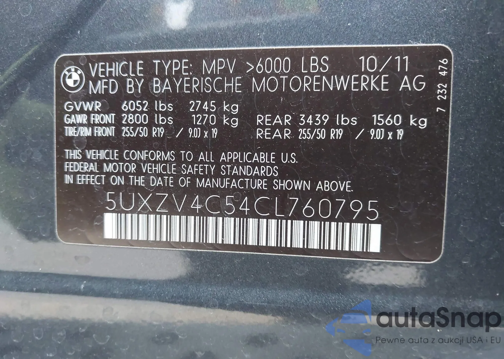 • VIN 5UXZV4C54CL760795