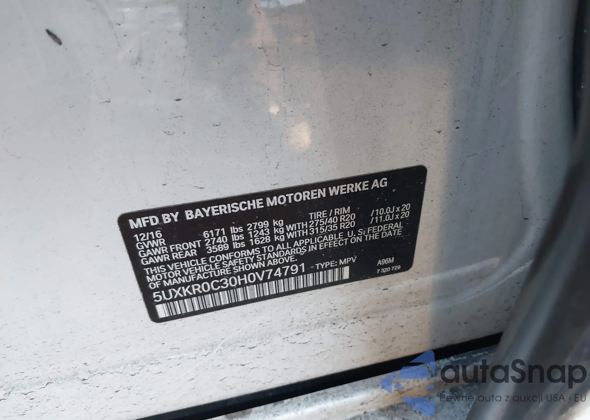 LOT: 44372872 VIN: 5UXKR0C30H0V74791