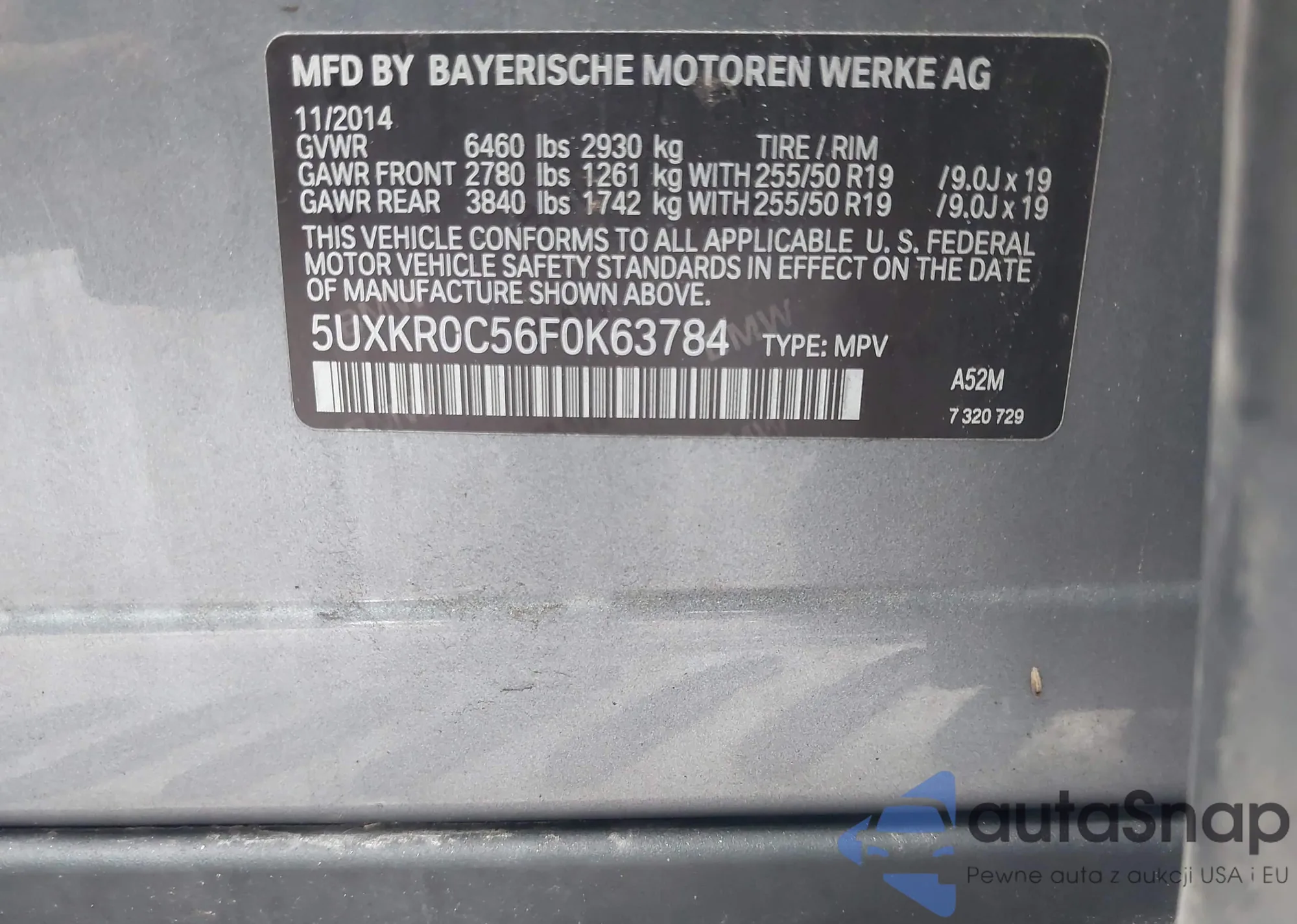 • VIN 5UXKR0C56F0K63784
