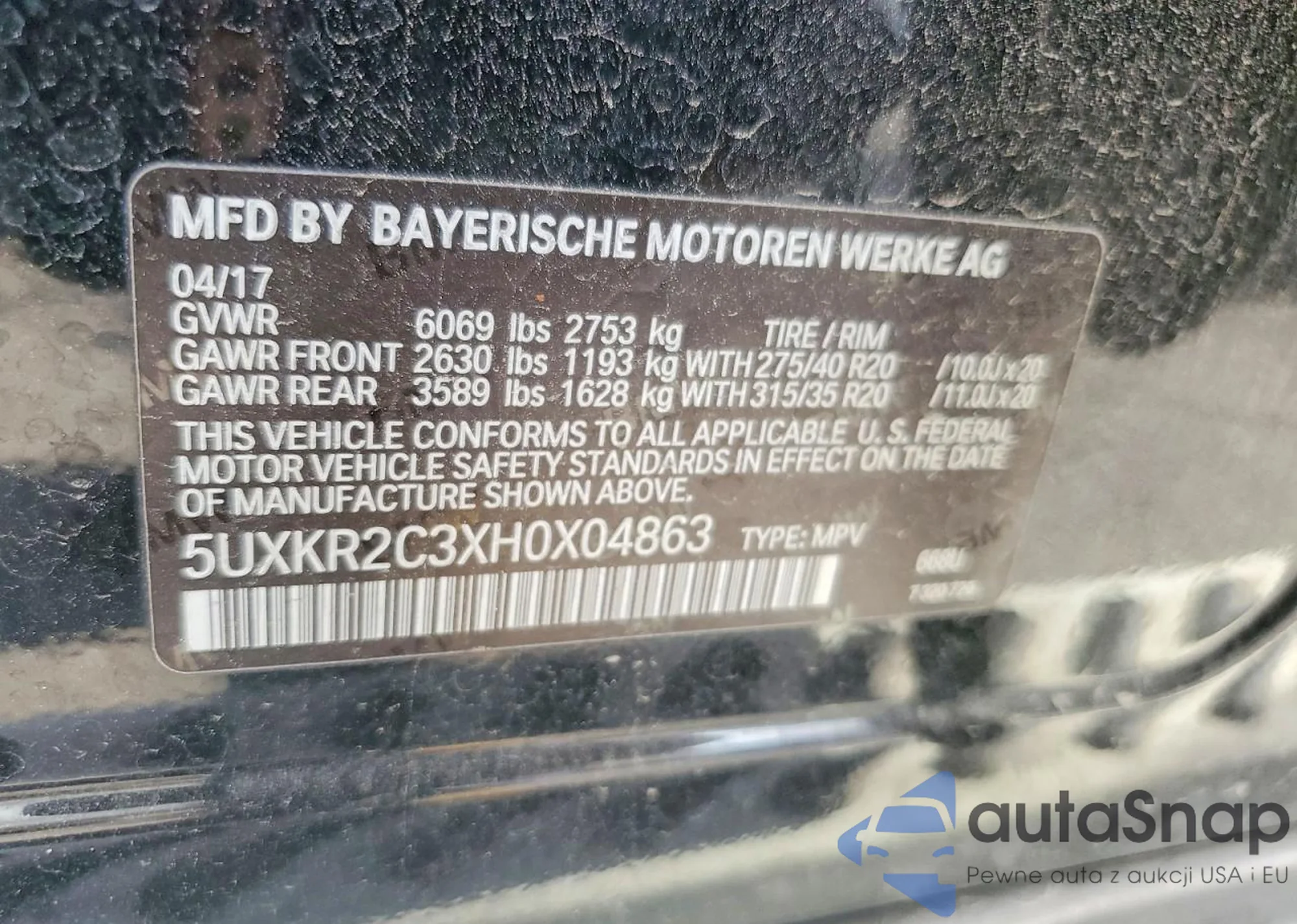 • VIN 5UXKR2C3XH0X04863