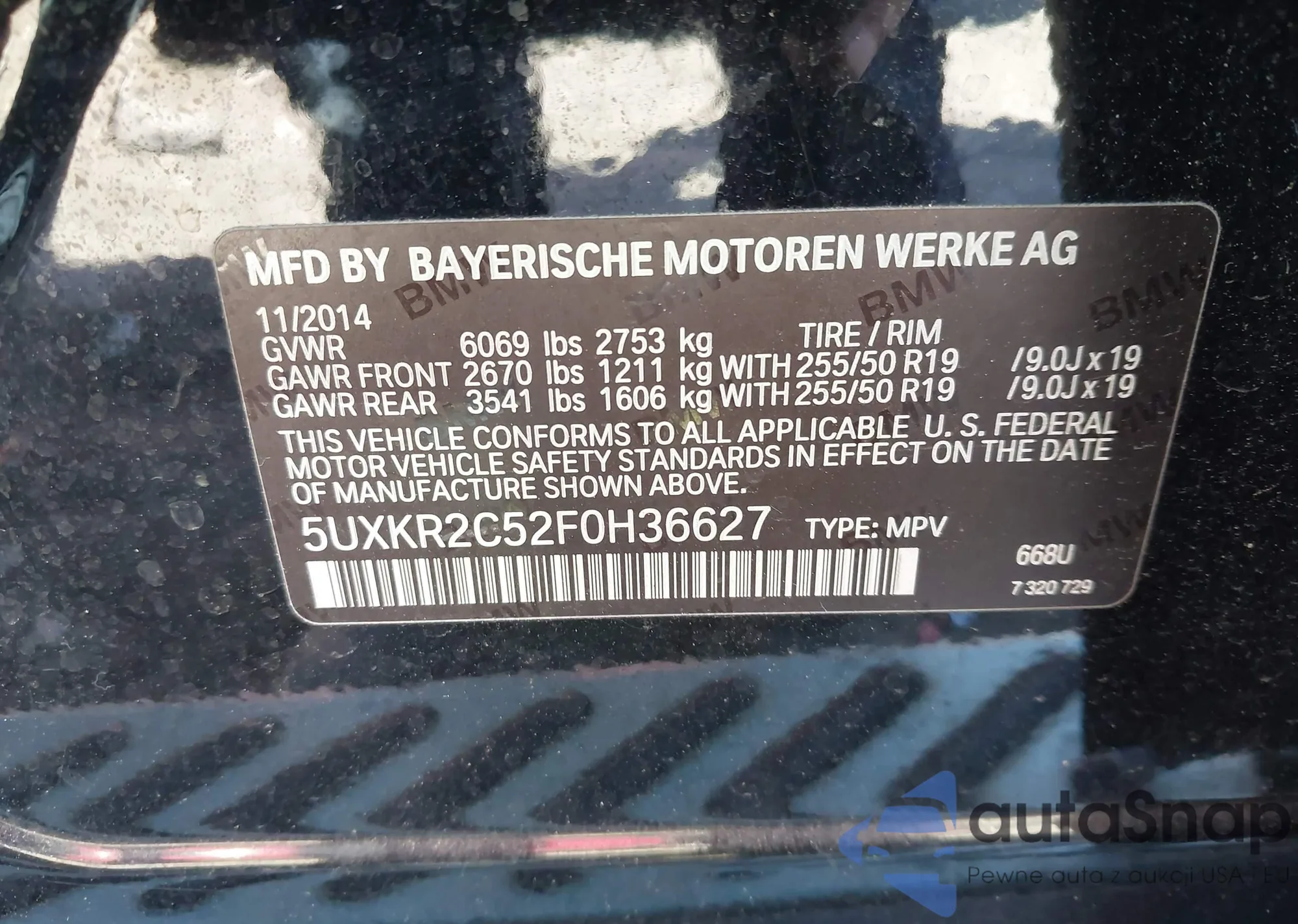 • VIN 5UXKR0C52F0K69050