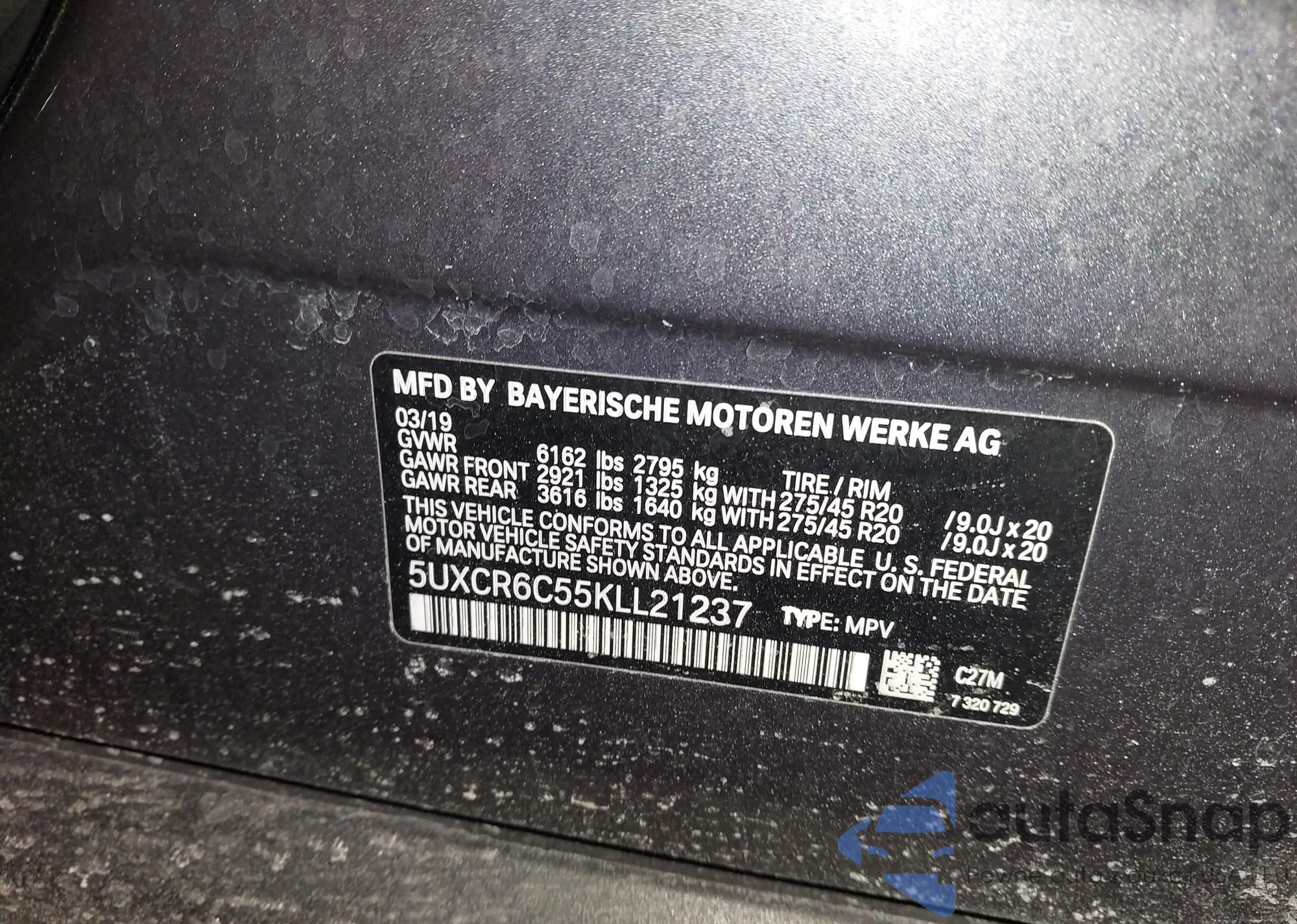 LOT: 97891295 VIN: 5UXCR4C05L9B52492