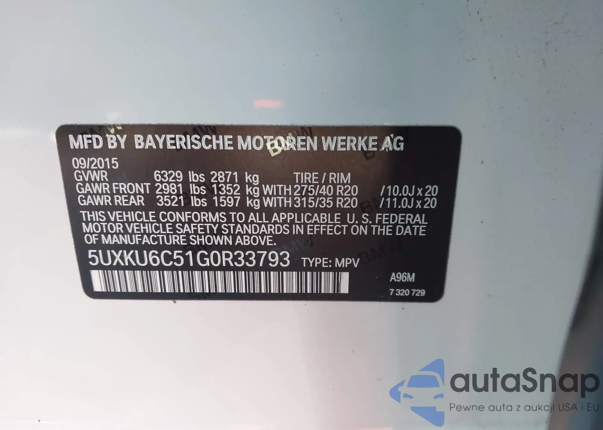 LOT: 44321941 VIN: 5UXKU6C53F0F93726