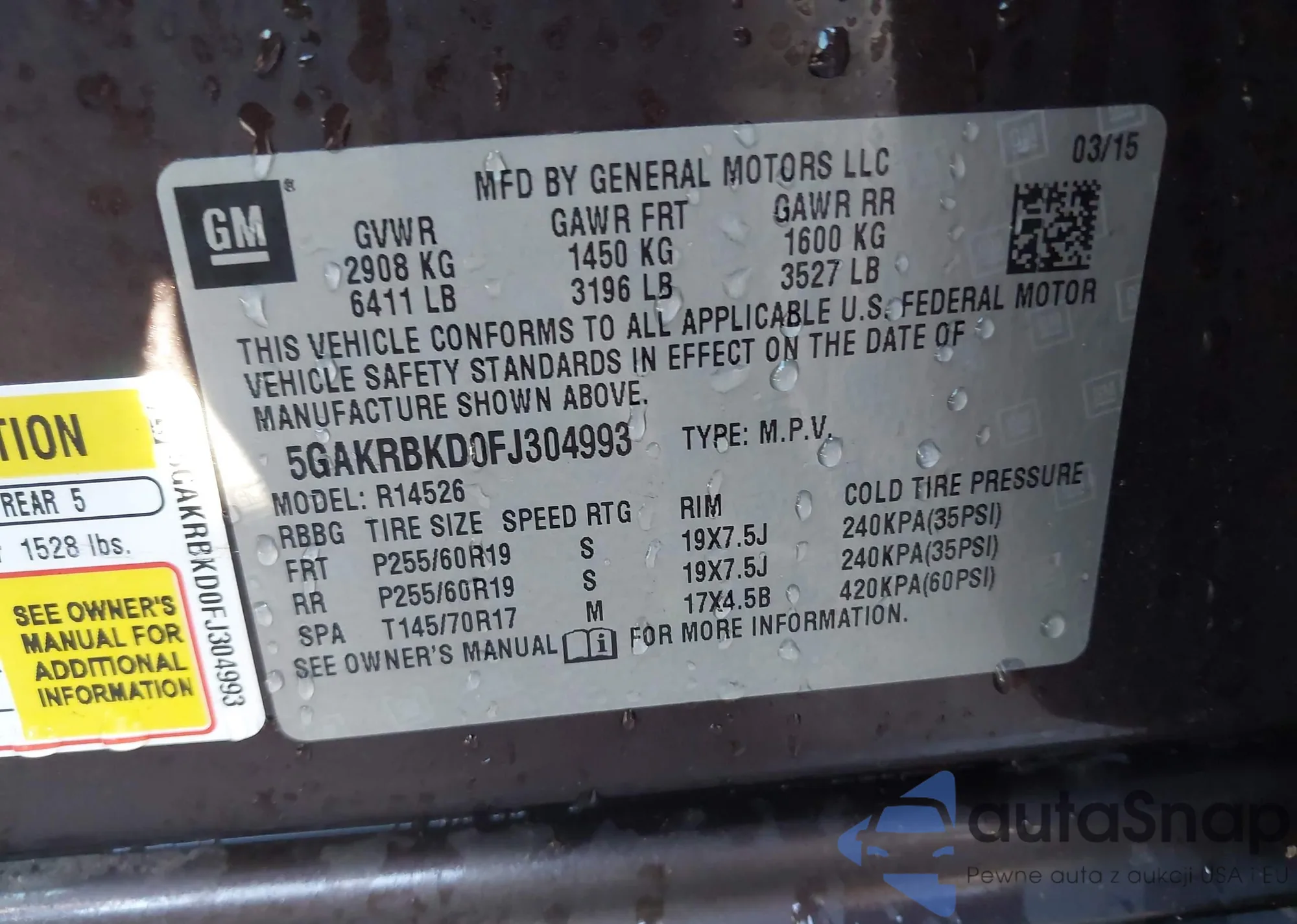 • VIN 5GAKRBKD0FJ304993