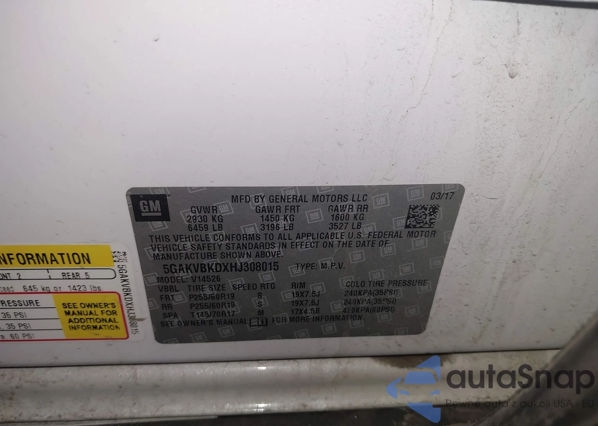 • VIN 5GAKVBKDXHJ308015