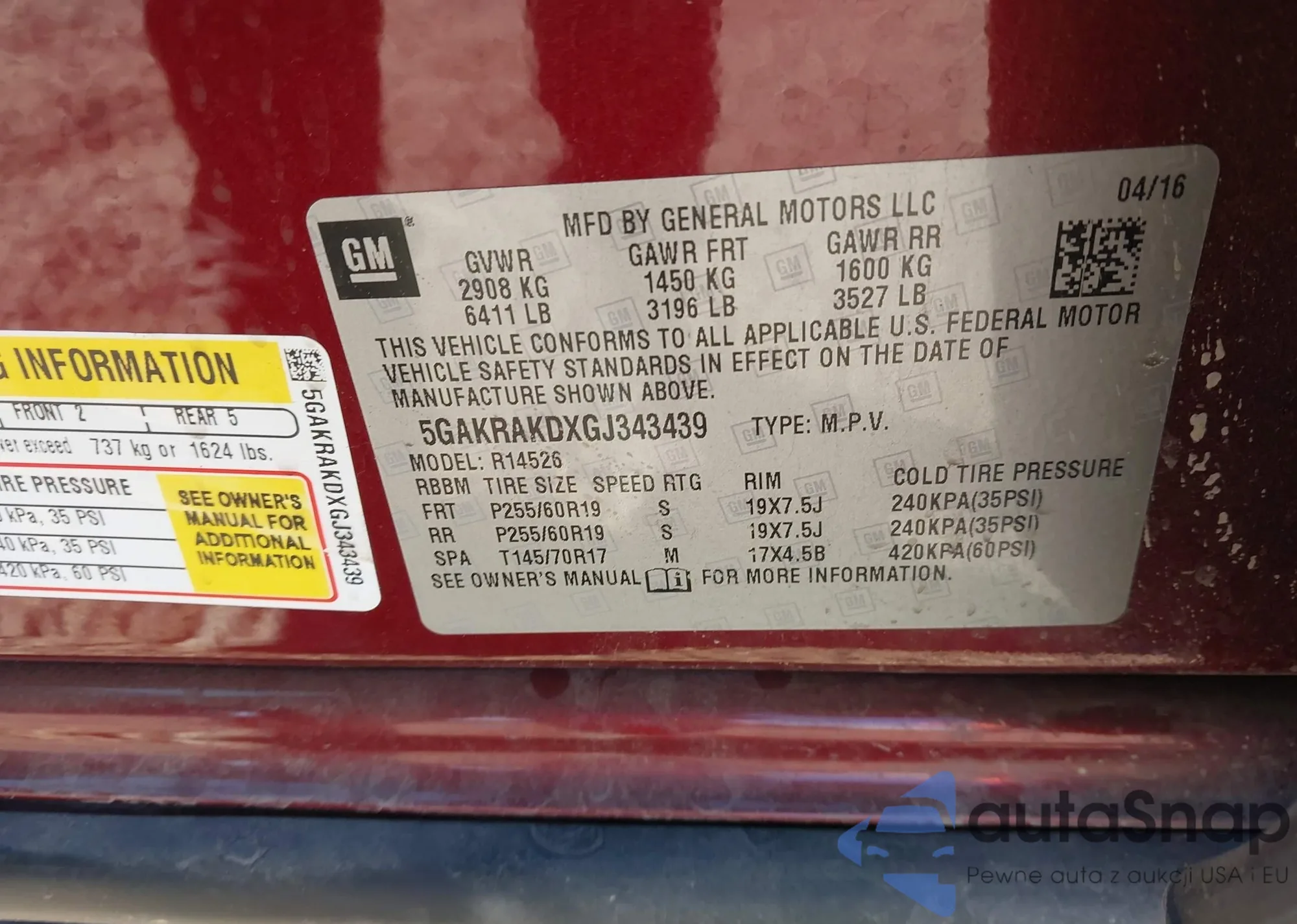 • VIN 5GAKRAKDXGJ343439