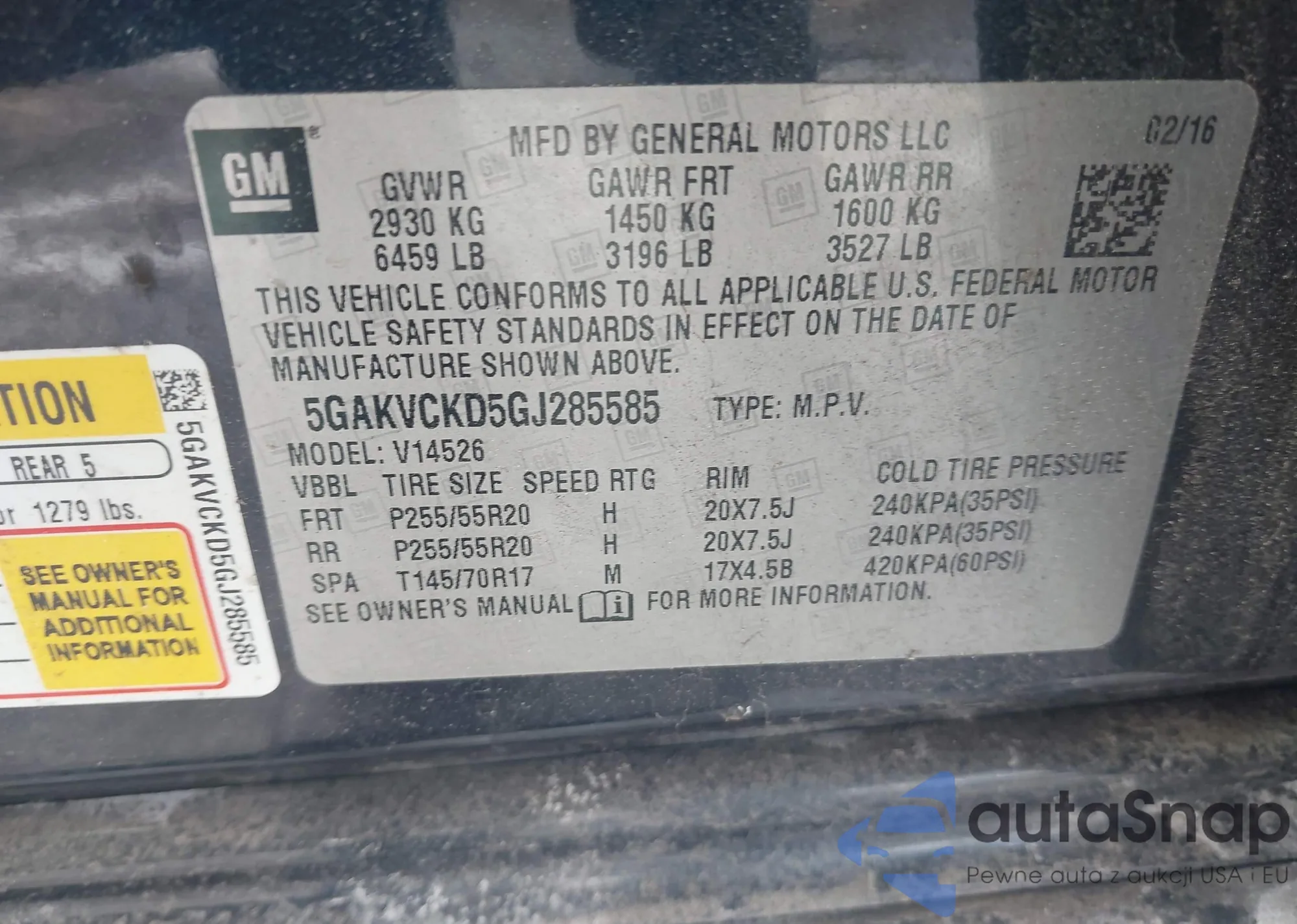 • VIN 5GAKVCKD5GJ285585