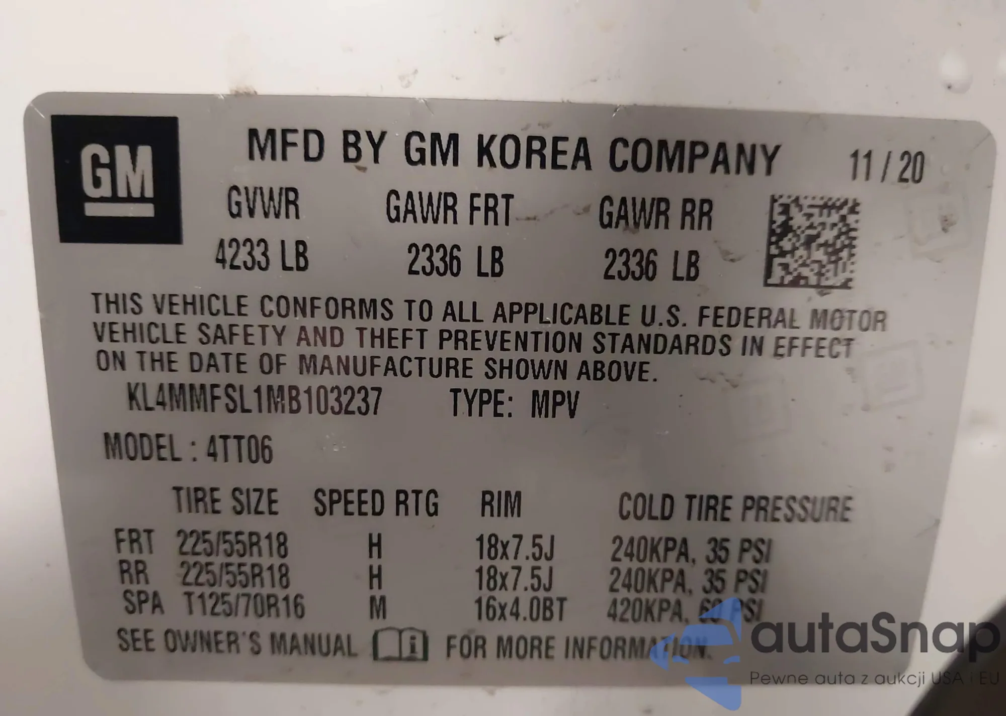 • VIN KL4MMFSL1MB103237