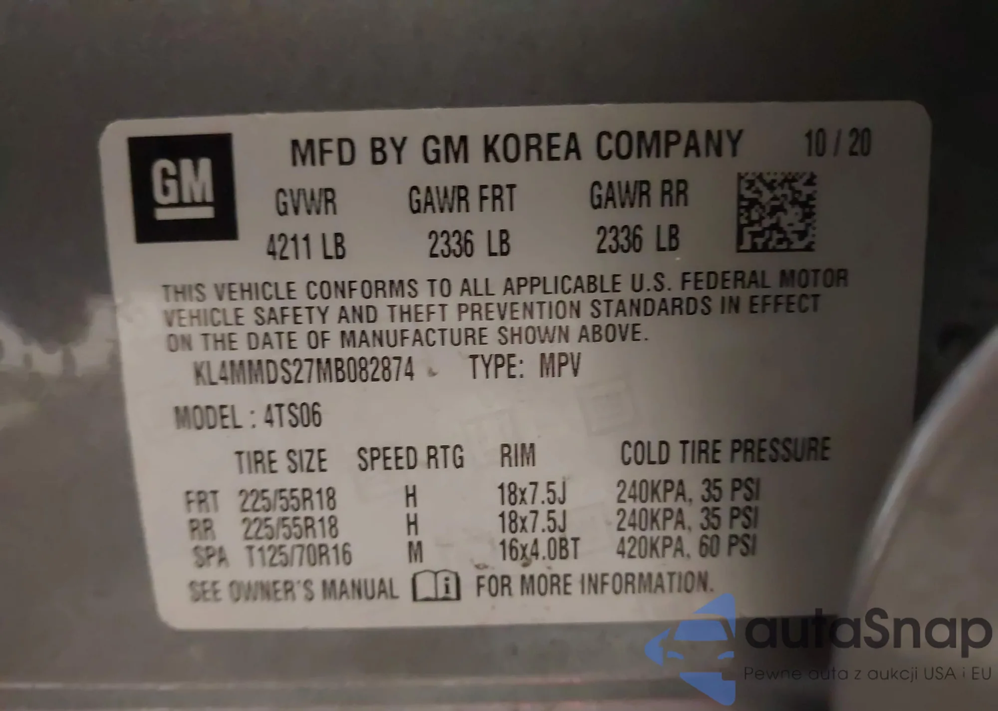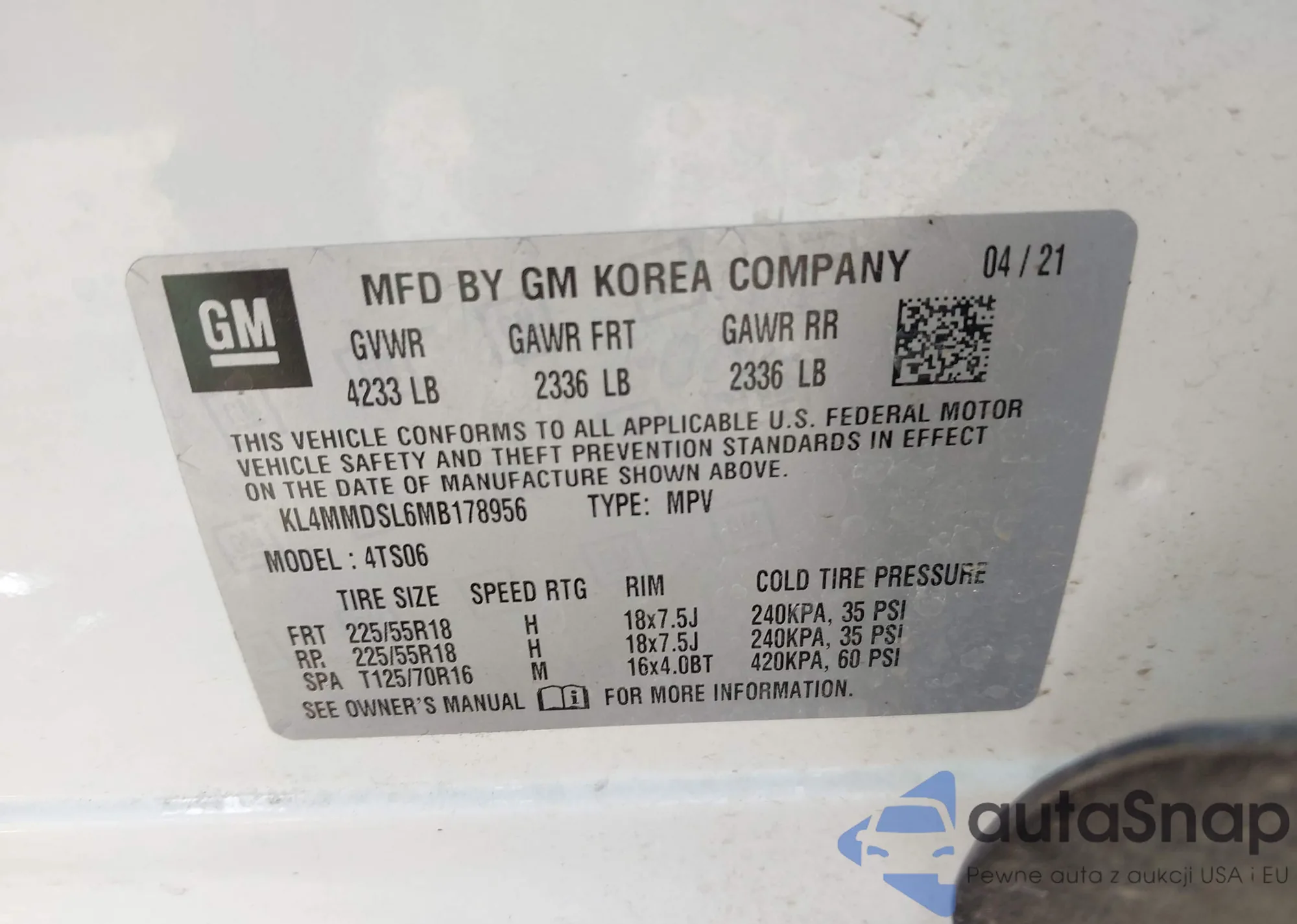 • VIN KL4MMDSL6MB178956